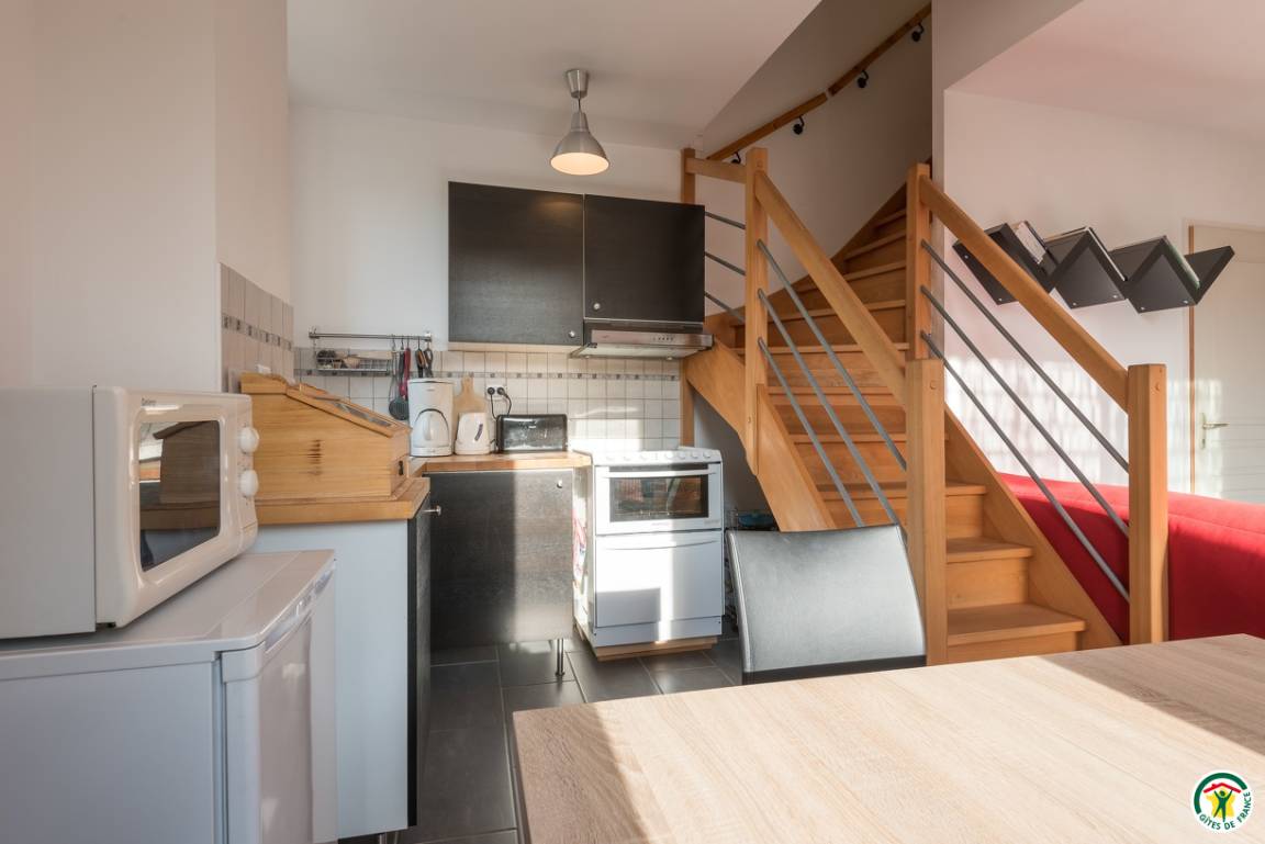 Die Unterkunft hat kein Gegenüber, einen eigenen Eingang und liegt im Obergeschoss, angrenzend an das Haus der Vermieter. 1. Stock: gut ausgestattete Küche/Wohnzimmer (Schlafsofa), WC. 2. Stock: 2 Schlafzimmer (wahlweise 2 Betten 90 cm oder 1 Bett 180 cm) (2 Betten 90 cm), Bad (Dusche)/WC. Die Unterkunft verfügt zudem über eine große eigene Terrasse. Ein eingezäunter Garten mit Bäumen kann ebenfalls benutzt werden. Überdachter Fahrradabstellplatz. Parkplatz in der Nähe.
