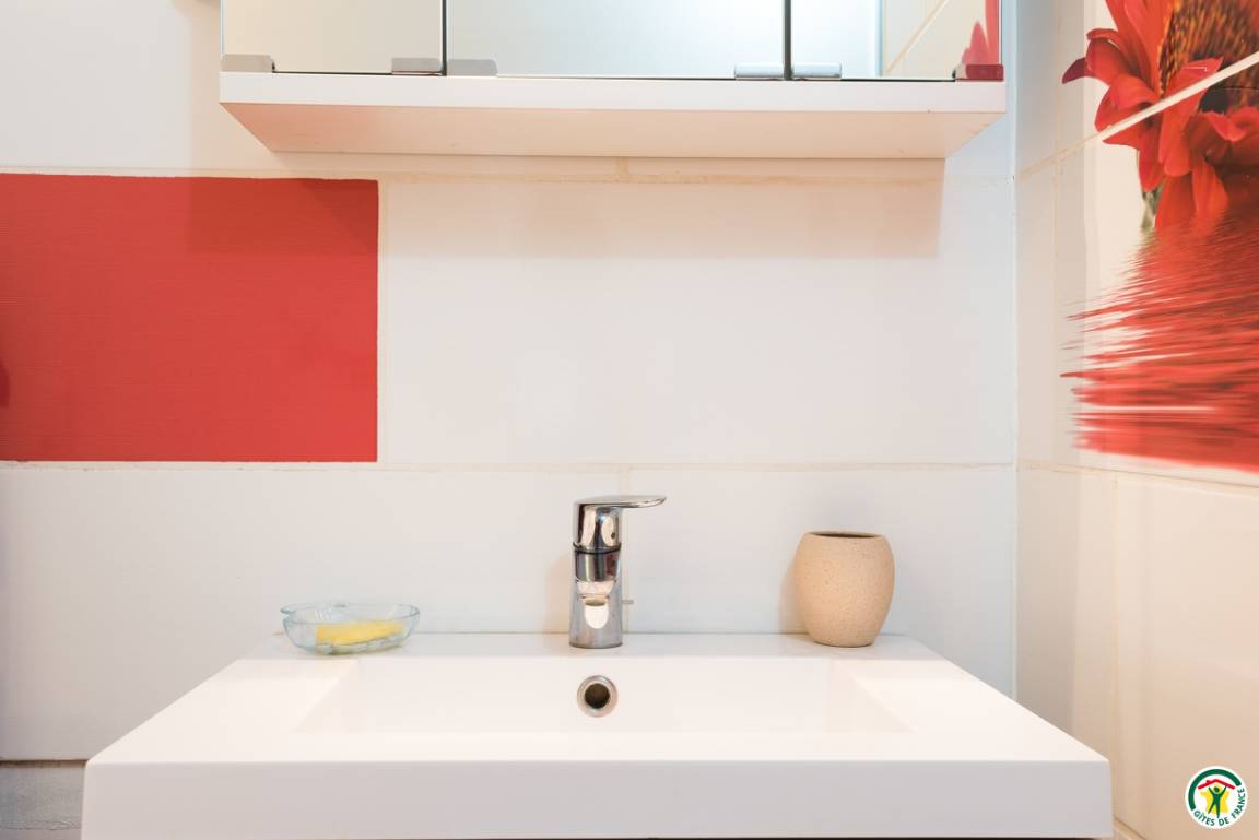 „Gîte très bien équipé. La literie est très bonne. L'appartement est agréable et lumineux. La terrasse est grande et située au-dessus du jardin des propriétaires. Joli point de vue assuré. Nous avons passé un très agréable séjour.“