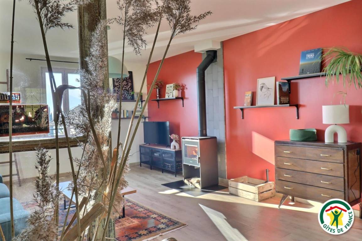 „Cet excellent gîte est aménagé depuis peu dans une maison ancienne. Les propriétaires ont su allier un côté moderne et pratique avec des objets anciens de bon goût, le tout dans un ensemble de couleurs qui rendent ce cocon doux mais aussi animé. La propreté, le linge assorti à la déco, le feu dans le poêle, la très belle vue panoramique, la tranquillité du lieu en font un endroit de séjour à recommander. Notez que des escaliers conduisent à ce logement.“