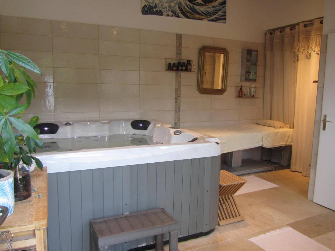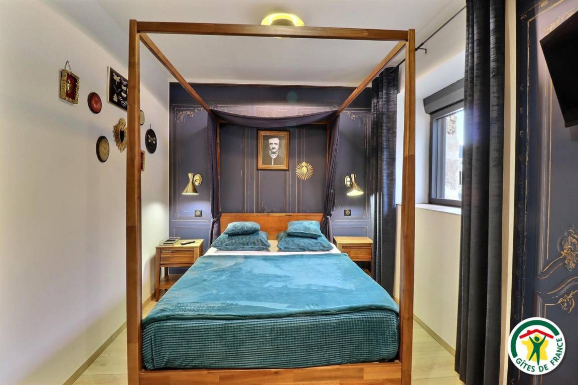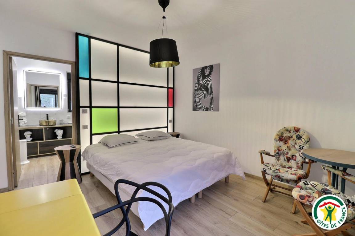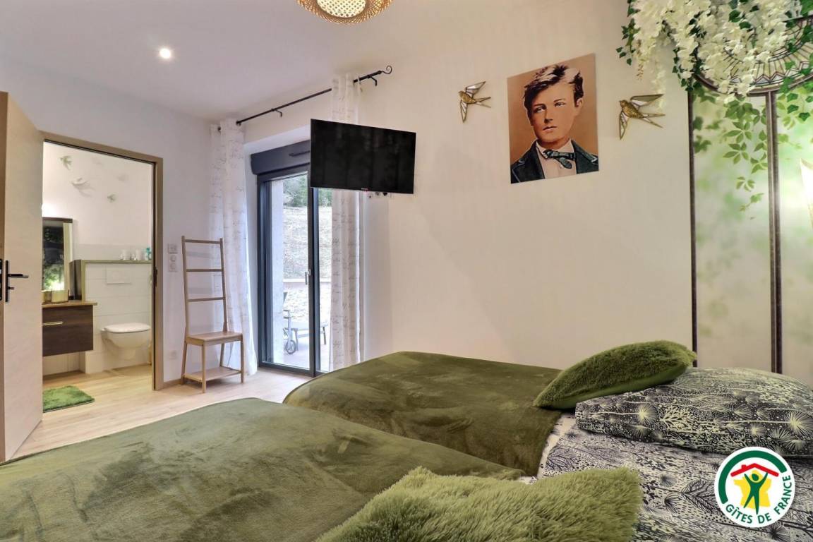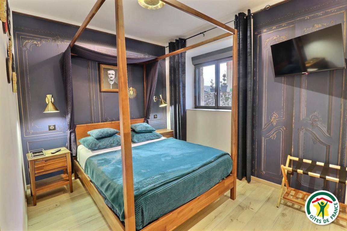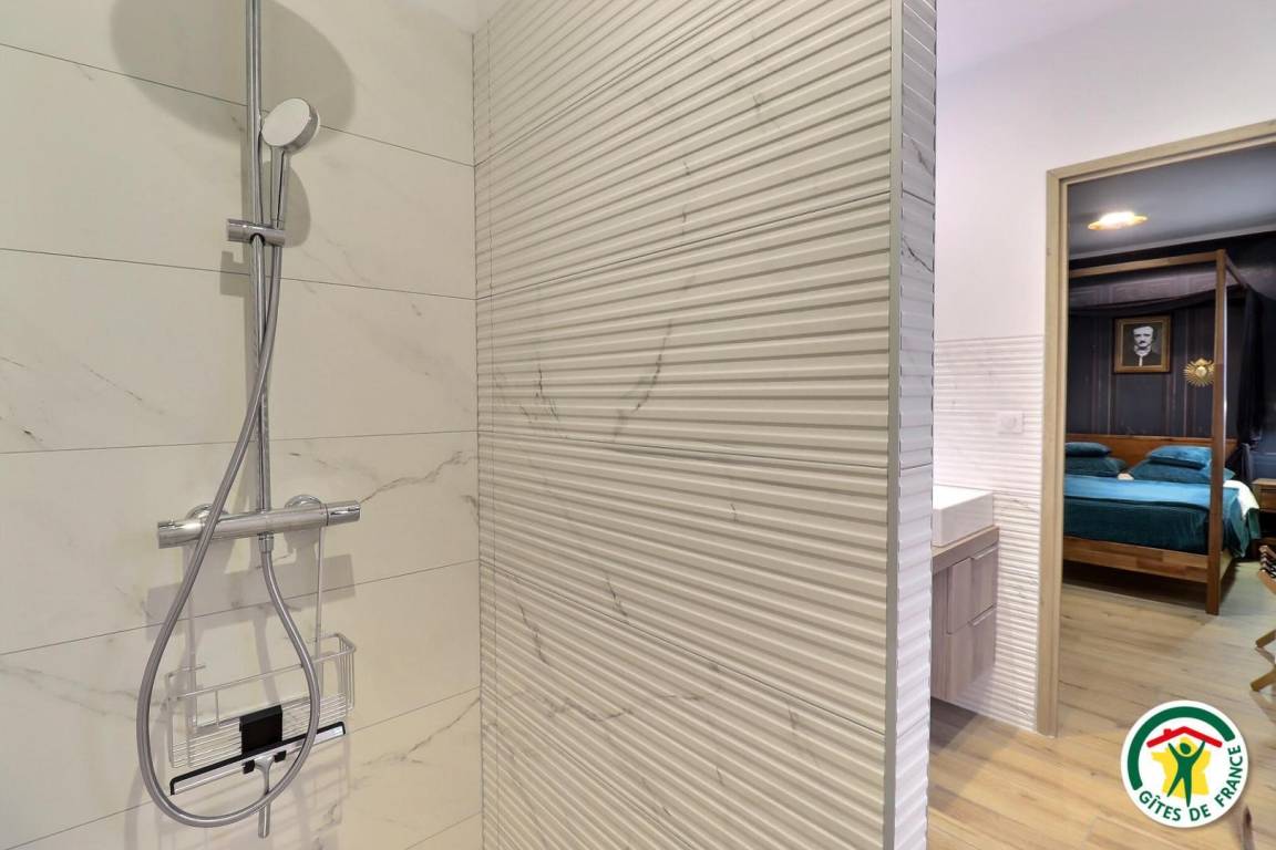 Hermès ist auf einer Ebene angeordnet. Der Eingang öffnet sich zum Wohn-/Loungeraum, der durch seine großzügige Fläche (50 m²) und seine hohen Decken beeindruckt. Die Küche mit ihrer zentralen Insel grenzt an die Terrasse (Erkerfenster). Der Flur führt zu den 3 Schlafzimmern und der separaten Toilette. Jedes Zimmer verfügt über eine private Atmosphäre und ein Badezimmer. Das „Edgar Poe"-Bett 140x190, TV, Bad/WC. Das „Arthur Rimbaud" 2 90x200 Betten, TV, Duschbad/WC, Zugang zur Terrasse. Das „Jim Morrison"-Bett 180x200, TV, Duschbad/WC, Terrassenzugang. Nur für Sie: Wellnessbereich (Spa, Massageliege, Crosstrainer), Südterrasse, Parkplatz, 2-Stellplatz-Garage. Zur Mitbenutzung mit unseren 2 Gîtes Vénus, Hélios: im Keller das Spielzimmer mit Billard, Tischfußball, TV, Brettspielen, Bibliothek, Klavier, Toilette. Zur Mitbenutzung mit Annabelle: die Waschküche im Keller (Waschmaschine und Trockner). Reisebett, Hochstuhl und Badewanne sind auf Anfrage erhältlich.