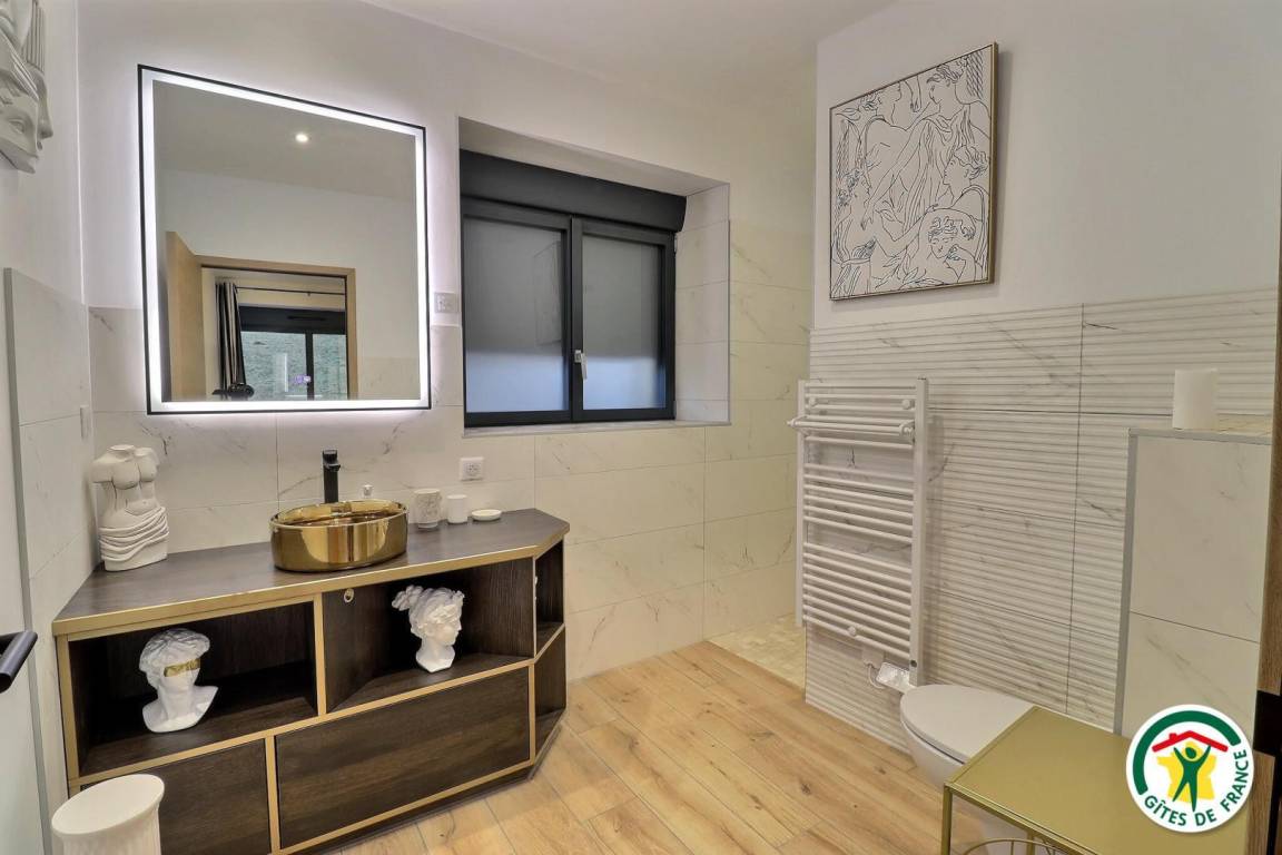 „Excellent séjour, le gîte est très bien aménagé, la décoration est originale et faite avec beaucoup de goût. L’endroit est magnifique, très calme et facile d’accès même s’il est isolé. C’est un excellent endroit pour se ressourcer et passer de très bons moments en famille.“