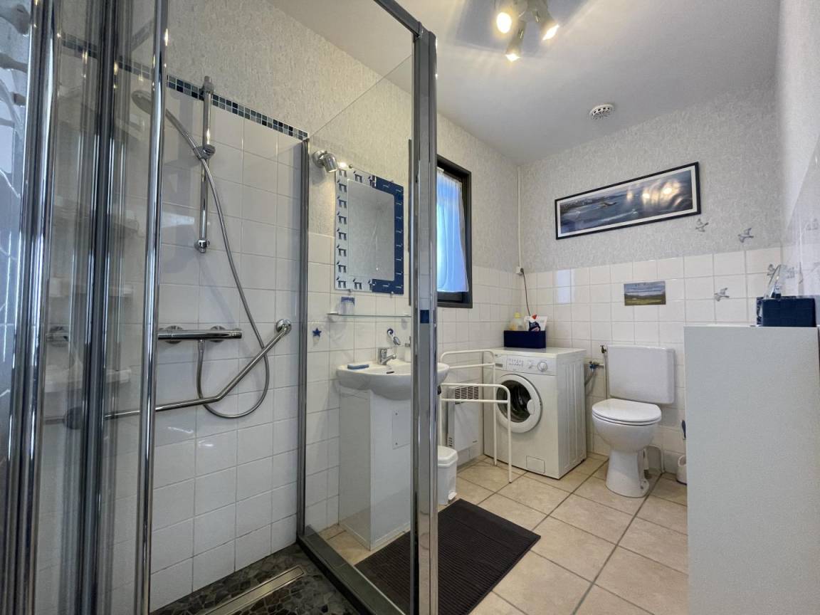 Die Wohnung ist angenehm und hell. Sie verfügen über ein Wohnzimmer mit ausgestatteter Küche (Gasherd, Mikrowelle, Kühl-Gefrierkombination, Mini-Geschirrspüler für 4 Maßgedecke), ein Wohnzimmer mit Sitzecke, ein Schlafzimmer mit 1 Doppelbett mit Standventilator, Duschbad/WC (Waschmaschine).