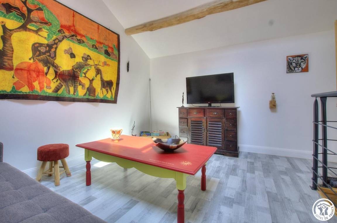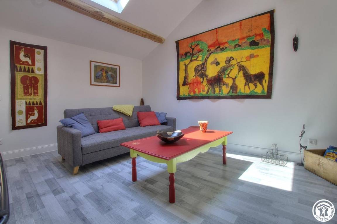 Die Gîte für zwei Personen erstreckt sich über zwei Ebenen und grenzt an die Familie. Verfügt über eine kleine private Terrasse und einen Garten auf dem Grundstück. Im Erdgeschoss: Einbauküche offen zum Essbereich. Unabhängiges WC. Obergeschoss: Wohnzimmer mit TV, Schlafzimmer und Duschbad.