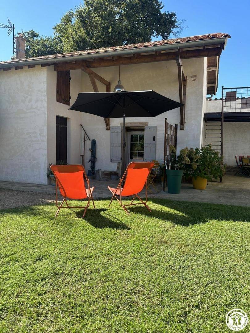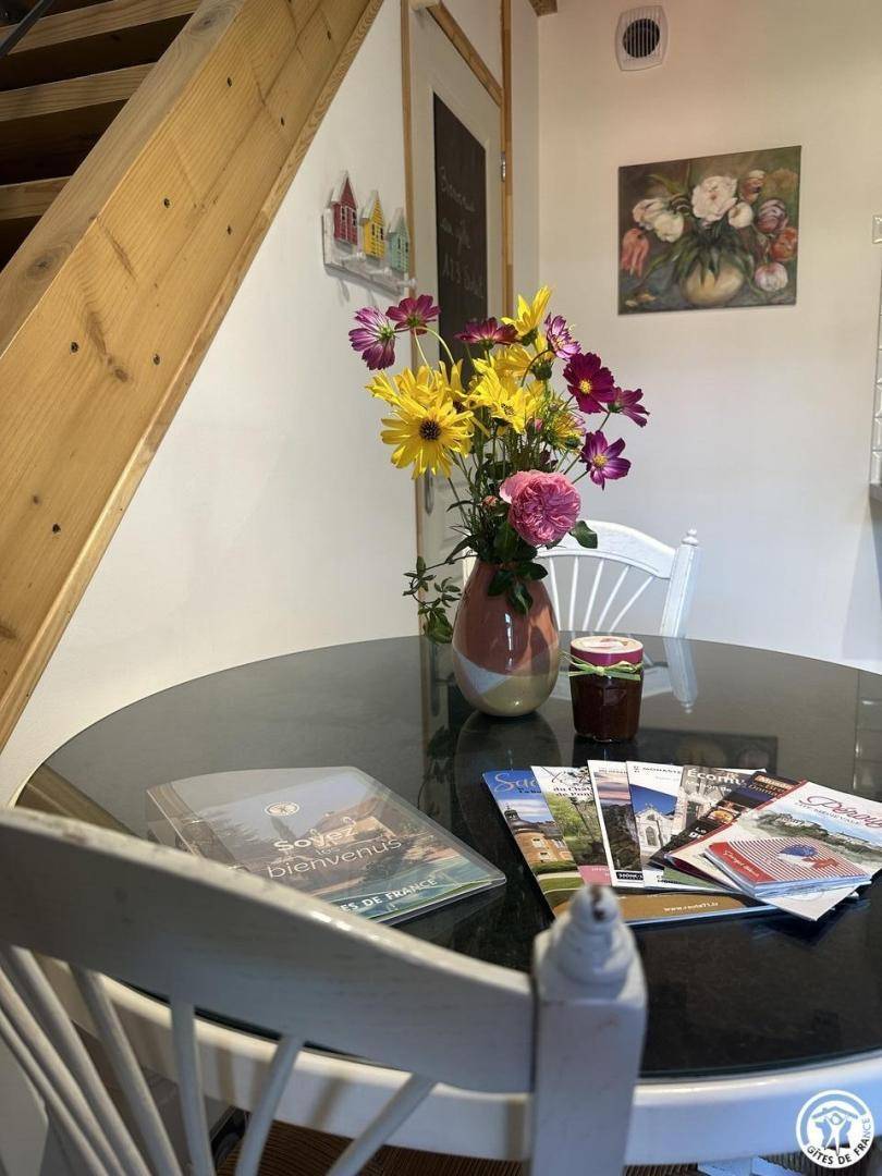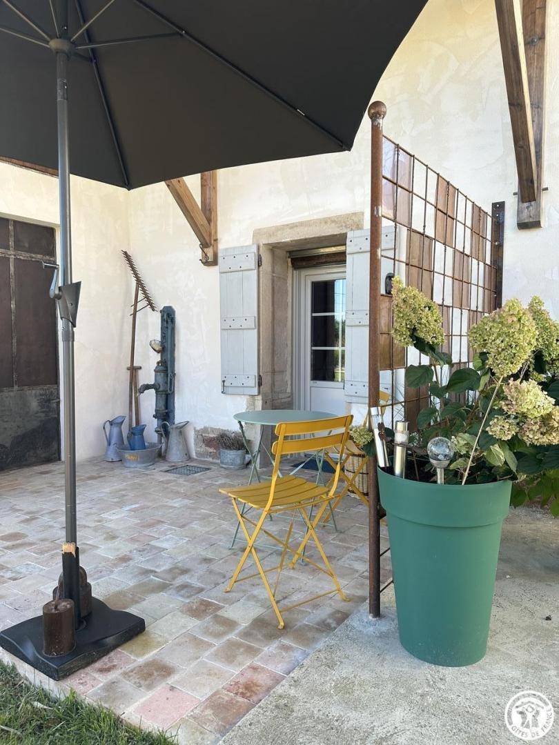 Auf dem Familiengrundstück verfügt die Gîte über eine kleine private Terrasse vor der Gîte und einen privaten Gartenbereich, in der Nähe des Malateliers von Marie Françoise.
