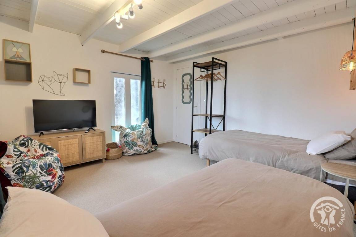 - ein Schlafzimmer mit zwei 90x200-Betten und einem Fernseher