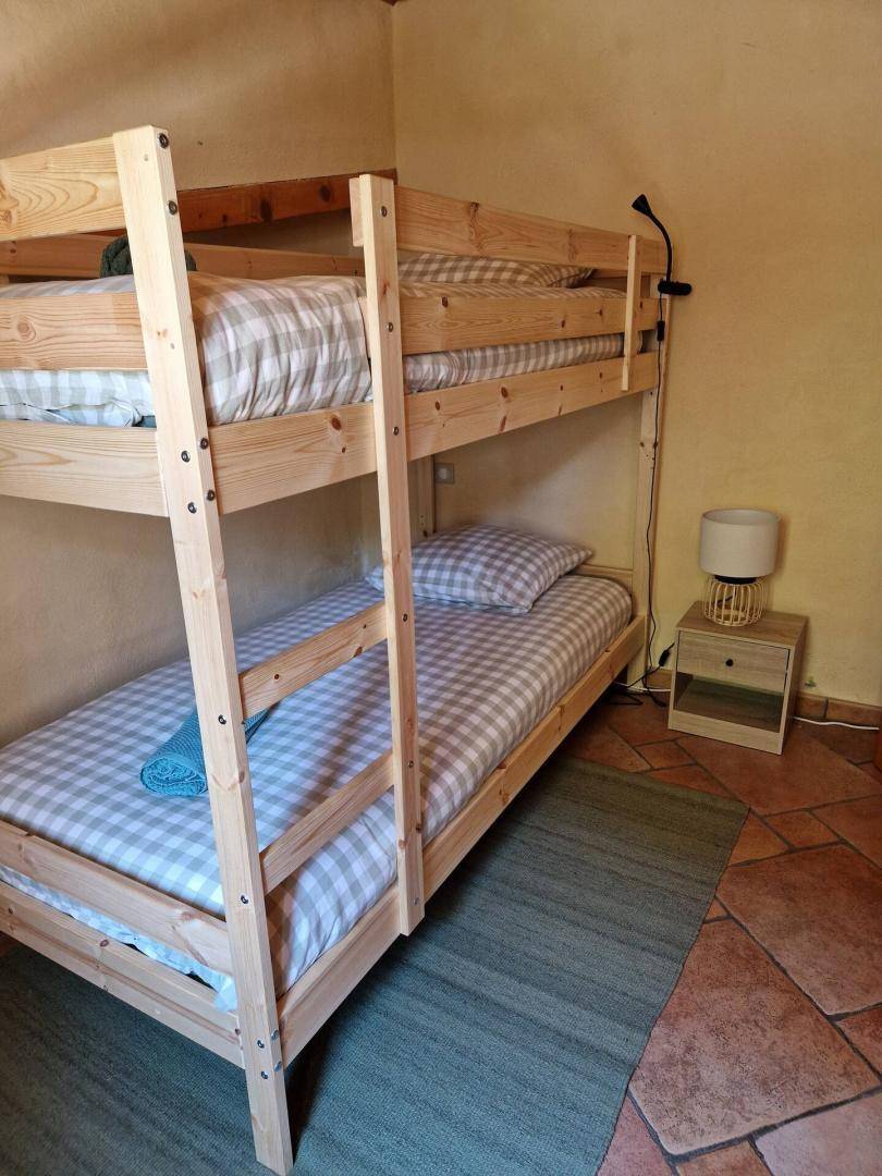 Im Erdgeschoss: Wohnküche mit Pelletofen, Schlafzimmer (2 Etagenbetten 90x200cm), Duschbad, WC, Waschküche. Obergeschoss: 2 Schlafzimmer (180 x 200) (140 x 190), Toilette, Treppenabsatz umgewandelt in einen Wohnbereich mit Sofas, Fernseher, Spielen und Bibliotheksecke. Außenbereich zur alleinigen Nutzung: Südterrasse, nicht eingezäunter Garten, Parkplatz. Der Holzofen wärmt Sie nach Ihren Tagen in den Bergen und die Zimmer bieten Ihnen einen erholsamen Schlaf – und das alles mit dem Komfort eines All-Inclusive-Services für einen Urlaub oder ein Wochenende ohne Aufpreis. Für Ihren Komfort sind die Betten bei Ihrer Ankunft gemacht. Wir wohnen nicht vor Ort, stehen Ihnen aber gerne zur Verfügung und zeigen Ihnen alle Sehenswürdigkeiten unserer schönen Region.