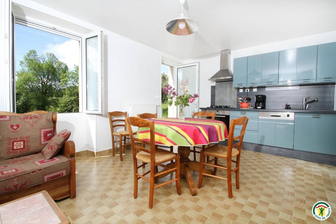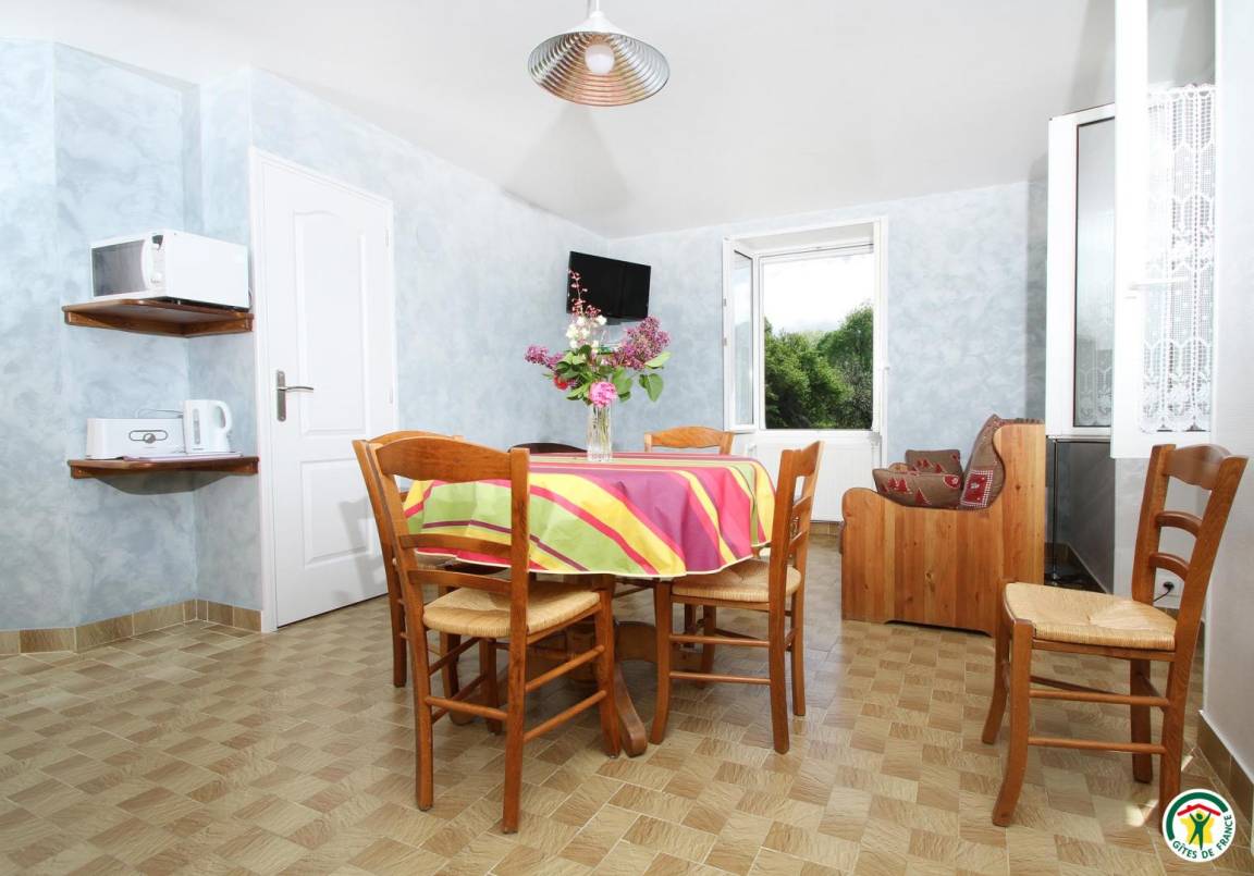 „Propriétaire sympathique et disponible. Ameublement rustique et très sobre. Cuisine neuve. Bien équipée. Tous ustensiles. Ménage impeccable. Lits confortables. Nuits très calmes...Maison fraîche quand il fait très chaud dehors. Quand j'ai demandé papier toilette, liquide vaisselle, serviette, j'ai été livré immédiatement. La ferme laitière est à côté: On peut y trouver un délicieux fromage blanc bio en faisselles. Les moustiquaires empêchent bien les mouches d'entrer. Ce serait bien que le petit sentier soit debroussaille...“