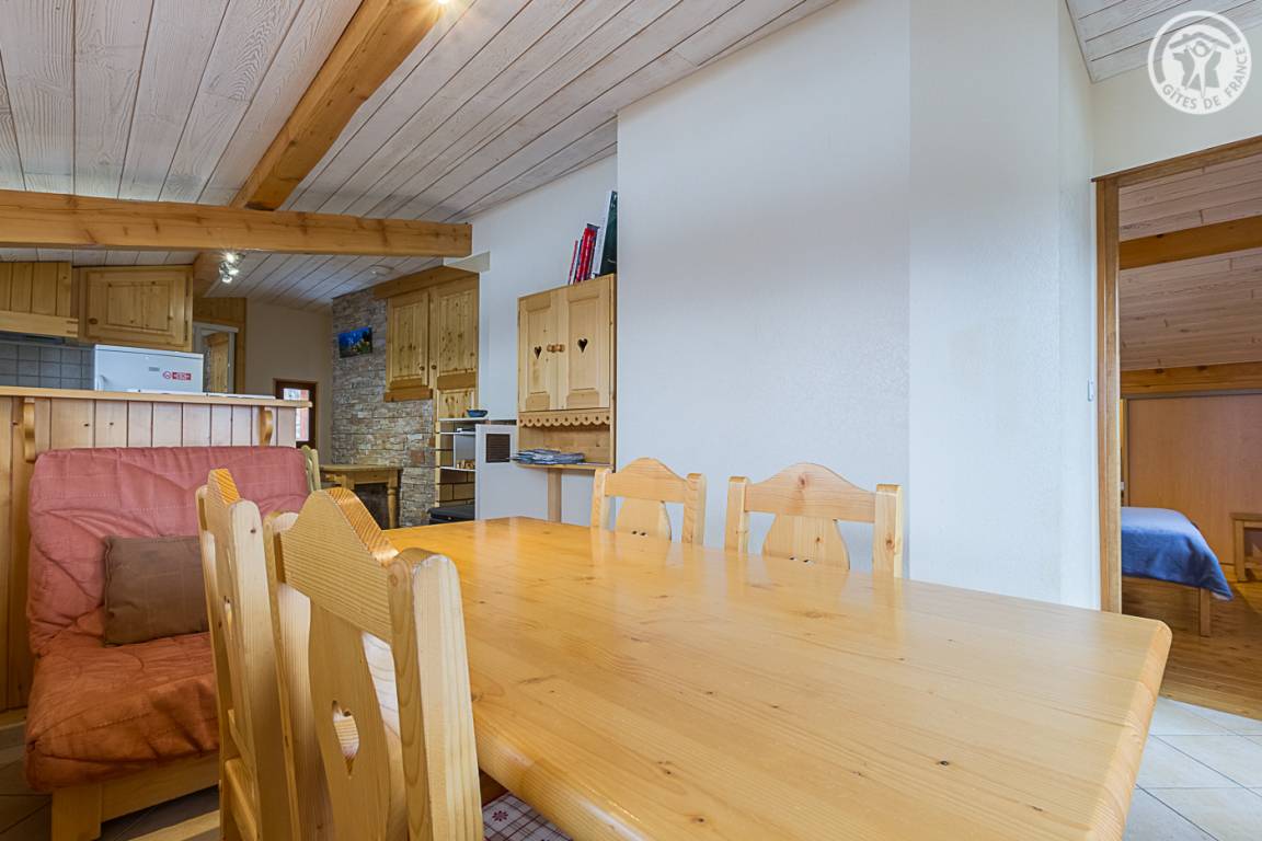 Ferienwohnung im Haus der Besitzer. 2. Stock: Wohnzimmer-Küchen-Loungebereich, 2 Schlafzimmer mit Fernseher und jeweils eigenem Bad (Doppelbett / 2 Einzelbetten, die zu einem Doppelbett zusammengestellt werden können). Balkon + kleines Grundstück. Skigondel von Orelle/3 Täler 26 km, die Karellis 24 km, Albiez 31 km. Langlauf 26km. Gewässer ausgestattet 16km. Schwimmbad 20 km.