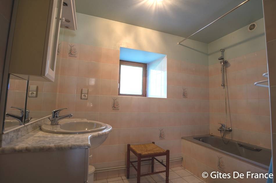 „Loin de tout commerces matelas en piteux état protèges matelas sales, couvres lits plein de taches, vaisselle sale, poêles toutes graisseuses, cuvette sous évacuation de l'évier fuite, éclairage de la salle de bain sucres à la place des lumières, baignoire avec un rideau plastique sale, des grosses toiles d'araignée dans toutes les pièces, sous les lits des minons extérieurs tables avec des toiles cirées toutes déchirées, chaises en plastiques toutes cassées, très très déçus pour un gîte de France à fuir“