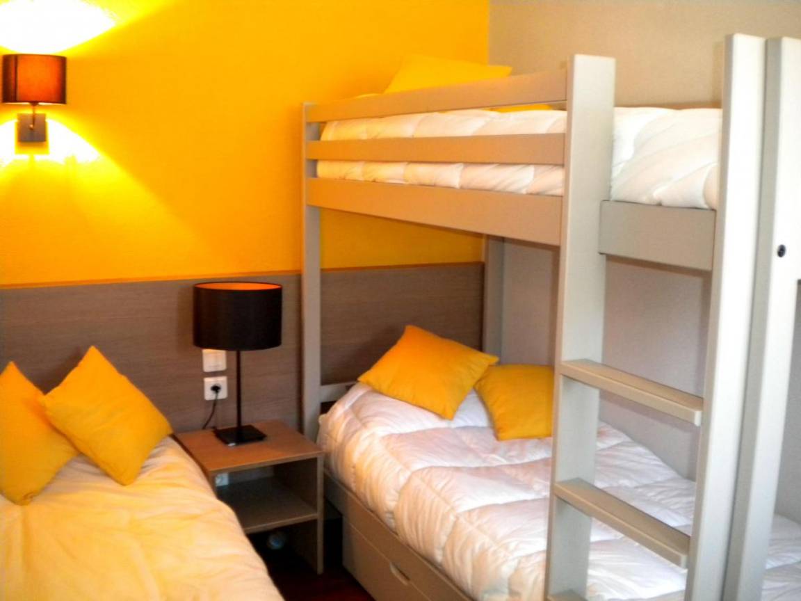 Das VVF Saint-Lary-Soulan Hautes-Pyrénées liegt 800 m vom Ferienort Saint-Lary-Soulan entfernt, im Herzen des Pyrenäen-Nationalparks. Dieses VVF umfasst 80 Apartments mit 2 oder 3 Ebenen für 4 bis 7 Personen, aufgeteilt in 8 terrassenförmig angelegte Pavillons am Berghang (mit vielen Treppen, nicht empfohlen für Personen mit motorischen Schwierigkeiten). Es liegt 1 km vom städtischen Freibad entfernt (kostenpflichtig). Fläche von ungefähr 55 m². Niveau 0 : Wohnzimmer. Schlafzimmer mit Doppelbett (140*190). Kochnische mit 2 Herdplatten, Kühlschrank. Waschräume. Niveau 1 : Wohnzimmer mit BZ-Sofas (140*190). Alkoven mit Einzelbett (80*190), 2 Stockbetten (80*190). Waschräume mit WC. Die oberen Betten sind nicht für Kinder unter 6 Jahren geeignet.