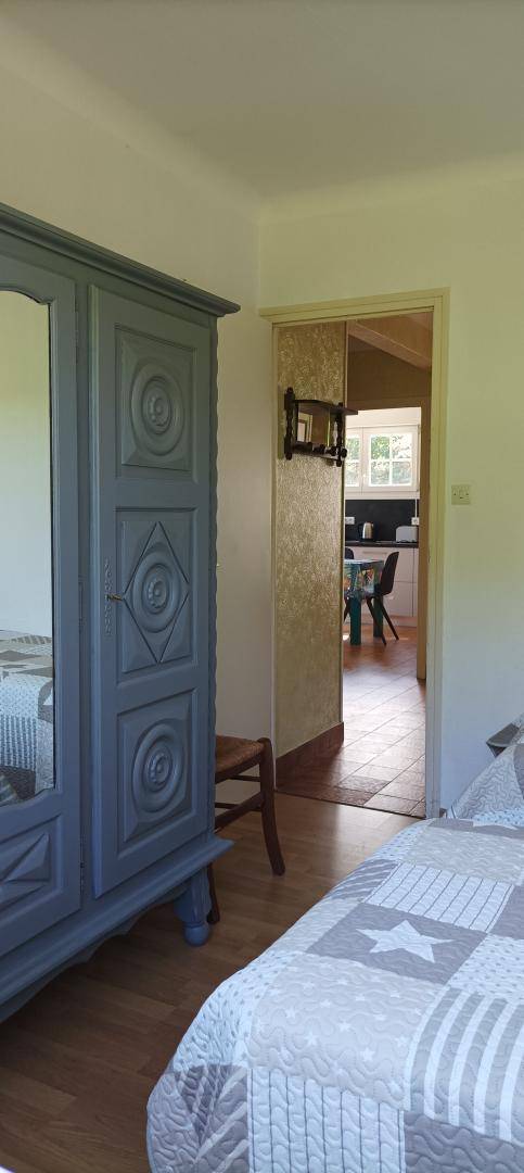 „Séjour très agréable au calme avec tout le confort: Juste 1 petit bémol mais sans gravité et qui ne concernera pas tout le monde !: Mon conjoint d' 1.90m dormait en travers du lit. La propriétaire est très gentille.“