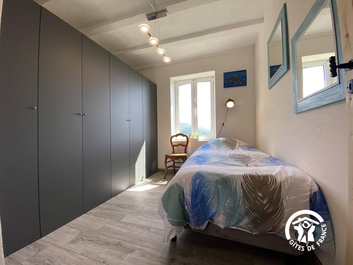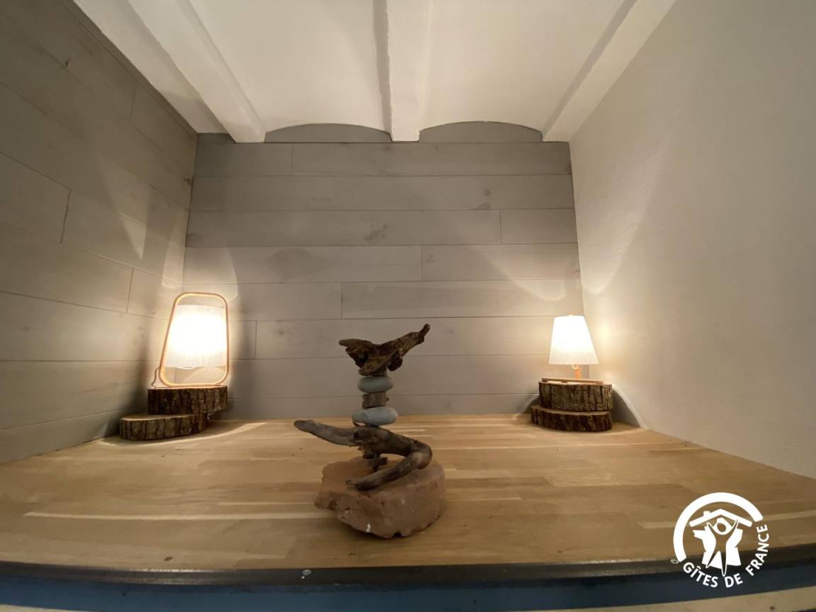 Minofen öffnen sich zu einer kleinen privaten Terrasse mit Gartenmöbeln. Die Küche ist separat. Ein angrenzender Raum ist zum Lesen oder für Brettspiele eingerichtet. WC.