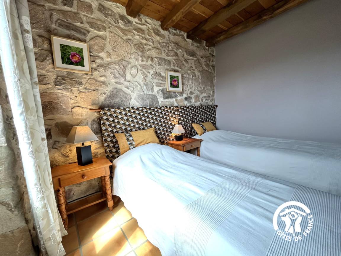 „Accueil très convivial avec plusieurs marques de bienvenue qui nous attendaient dans le gîte. Ma première remarque faite à Sylvie, la propriétaire, a été que le gîte était encore plus beau en vrai que sur les photos ! Ce gîte est un havre de paix. Avec mes garçons de 13 ans, nous avons pris beaucoup de plaisir à profiter de la présence de chèvres et de brebis avec leurs petits sur le domaine. Il y a de nombreuses randonnées à faire dans les alentours (un book est mis à disposition dans le gîte) et de jolis villages ou petites villes à visiter. Sylvie et son mari Guy font preuve d'une extrême gentillesse. Je recommande ce gîte !“
