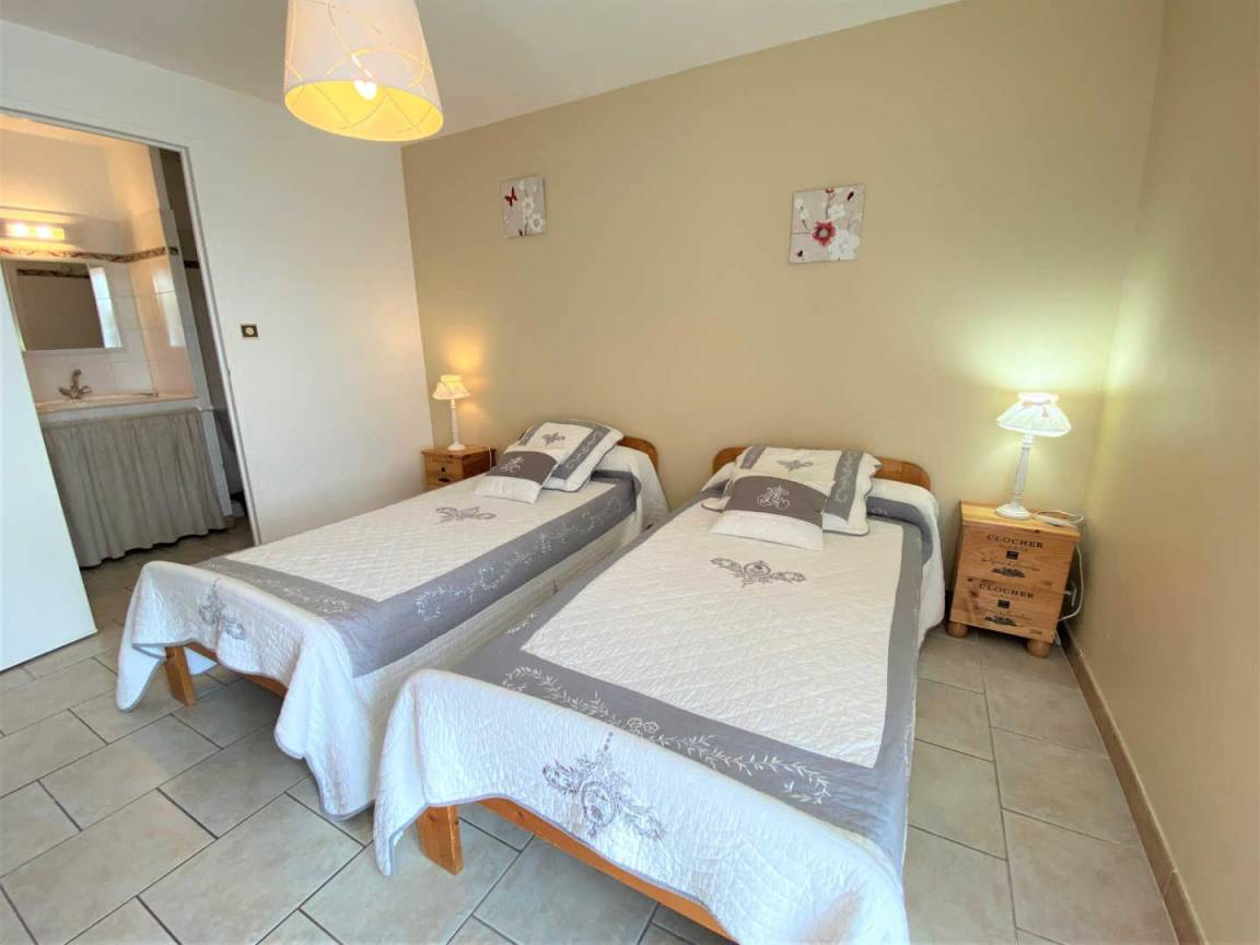Erdgeschoss: Wohnzimmer-Wohnküche Zimmer. Zwei Schlafzimmer mit einem Doppelbett, zwei getrennte Betten, zwei Badezimmer mit zwei Toiletten. Der Videoton ist reversibel. Ein Auto zu vergießen. Das Dorf ist ein Zentrum der Entspannung mit einem beheizten Innenpool, Spa und Massagen)