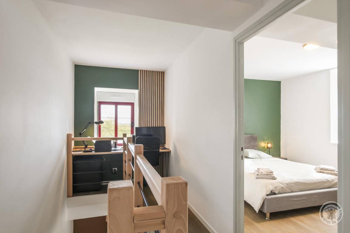 „Très bon séjour en famille dans ce gîte, très bien équipé, spacieux et décoré avec beaucoup de goût. Gîte en pleine campagne dans une route sans issue. Très calme. Grand espace vert devant la maison (avec la visite de lapins :)) . Les pièces sont toutes très spacieuses et bien aménagées. Nous nous sommes trouvés à l'aise tout de suite. La cuisine est extrèmement bien équipée. Nous n'avons manqué de rien. Le contact avec le propriétaire a été très chaleureux. Il s'est assuré que nous étions bien installés et a répondu à toutes nos questions. Je recommande ce gîte les yeux fermés.“