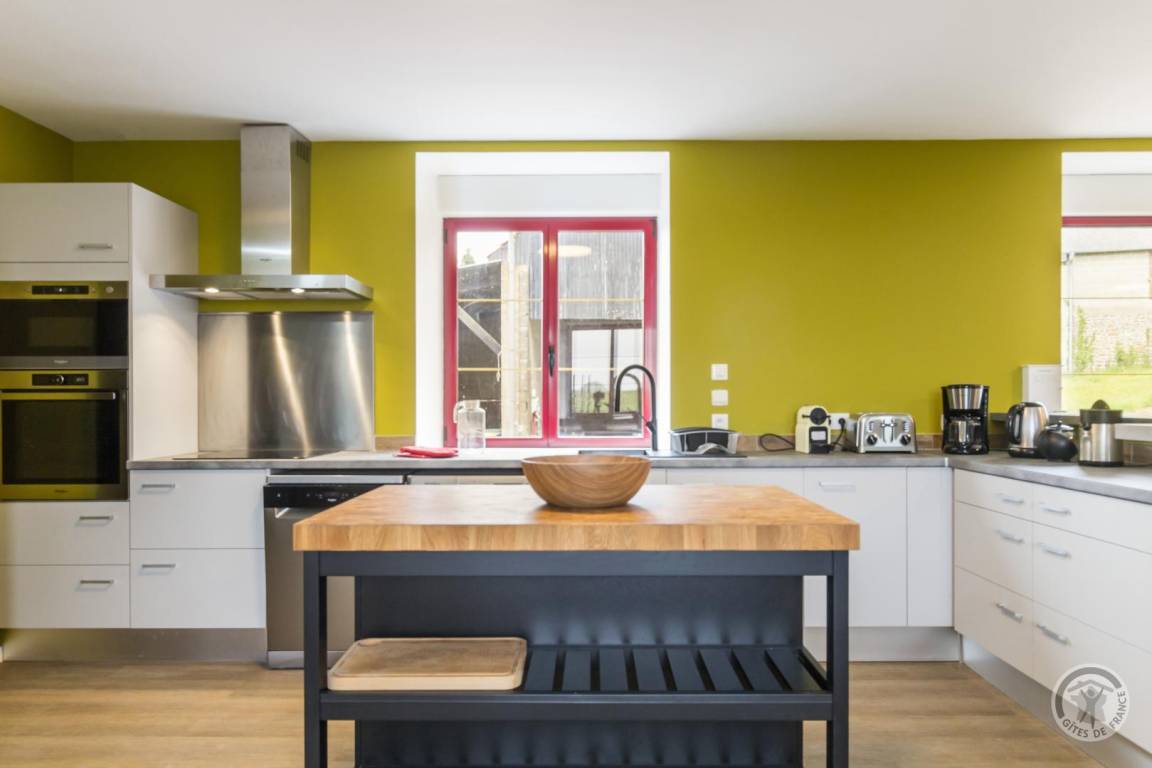 „Un propriétaire a nos petits soins, il a répondu à nos demandes particulières. Il est très chaleureux. Un gîte moderne, de très grand confort, au milieu des champs dans un endroit particulièrement calme. Compte-tenu du nombre de personnes, J'avais loué les 2 gîtes et nous avons passé Un super moment familial.“