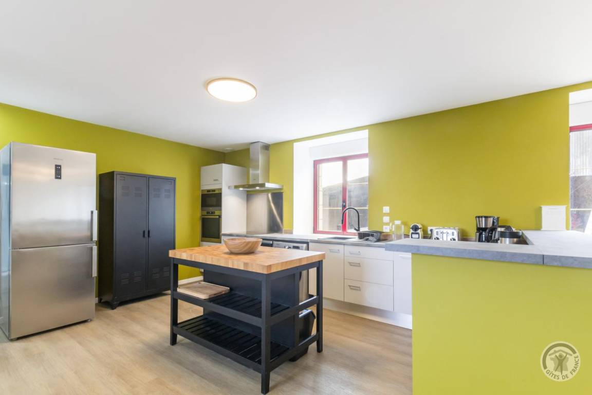„Gite spacieux, très bien équipé (cuisine, serviettes, gel douche...) et très agréable, en très bon état, au calme. Il manquerait éventuellement un ou deux marchepieds pour les petits enfants. Un moment agréable entre amis avec jeunes enfants.“
