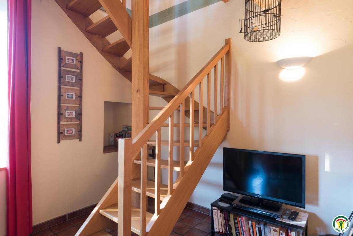 Erdgeschoss: Küche/Wohnzimmer. Obergeschoss: 1 Schlafzimmer (1 Bett 160 cm), Badezimmer mit Badewanne und Dusche. Heizkamin und Elektroheizung.
