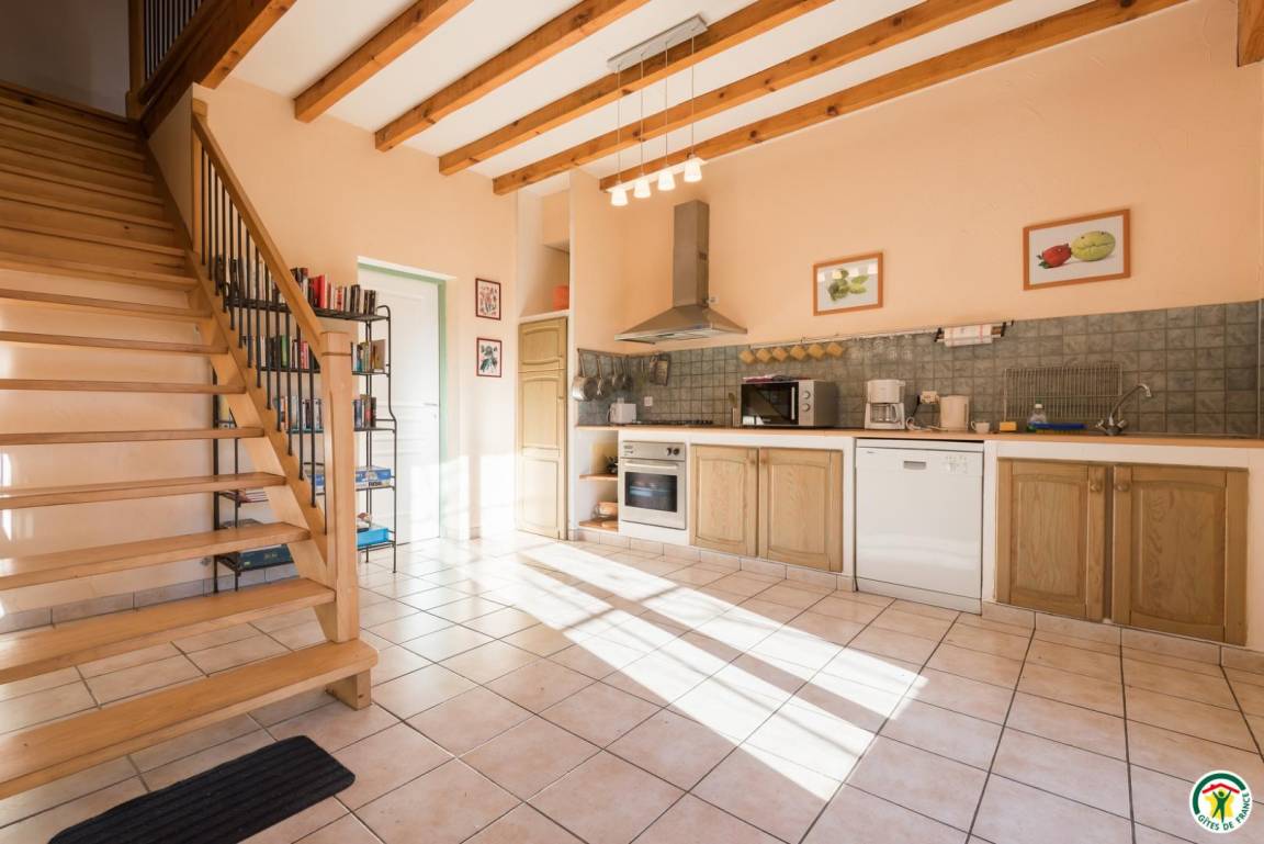 "Die Ferienunterkunft grenzt an die Unterkunft "La Bergerie" an. Erdgeschoss: großes Wohn-/Esszimmer/Einbauküche, Alkoven mit 1 Bett und eigener Sanitäranlage für 1 Person mit eingeschränkter Mobilität, Waschküche. Obergeschoss: 3 Zimmer (2 Betten 90 cm/1 Bett 140 cm/2 Betten 80 cm oder 1 Bett 160 cm), Badezimmer, WC. Elektroheizung."