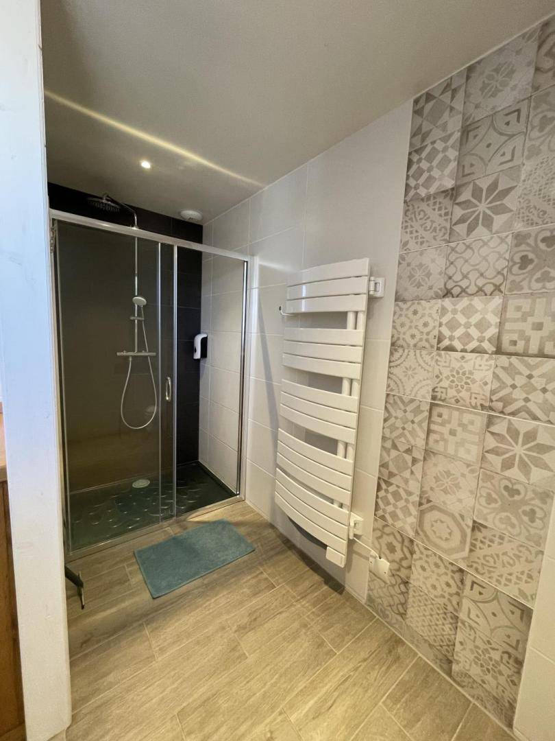 OG: Einbauküche offen zum Wohnzimmer, 2 Schlafzimmer für 2 Personen (1 Bett 140 x 190 cm), 1 Badezimmer (Dusche) und 1 separates WC, 1 Schlafzimmer für 2 Personen (2 Betten 90 x 190 cm übereinander ). Reversible Klimatisierung. Innen- und Außentreppe. Profitieren Sie von einer Terrasse au