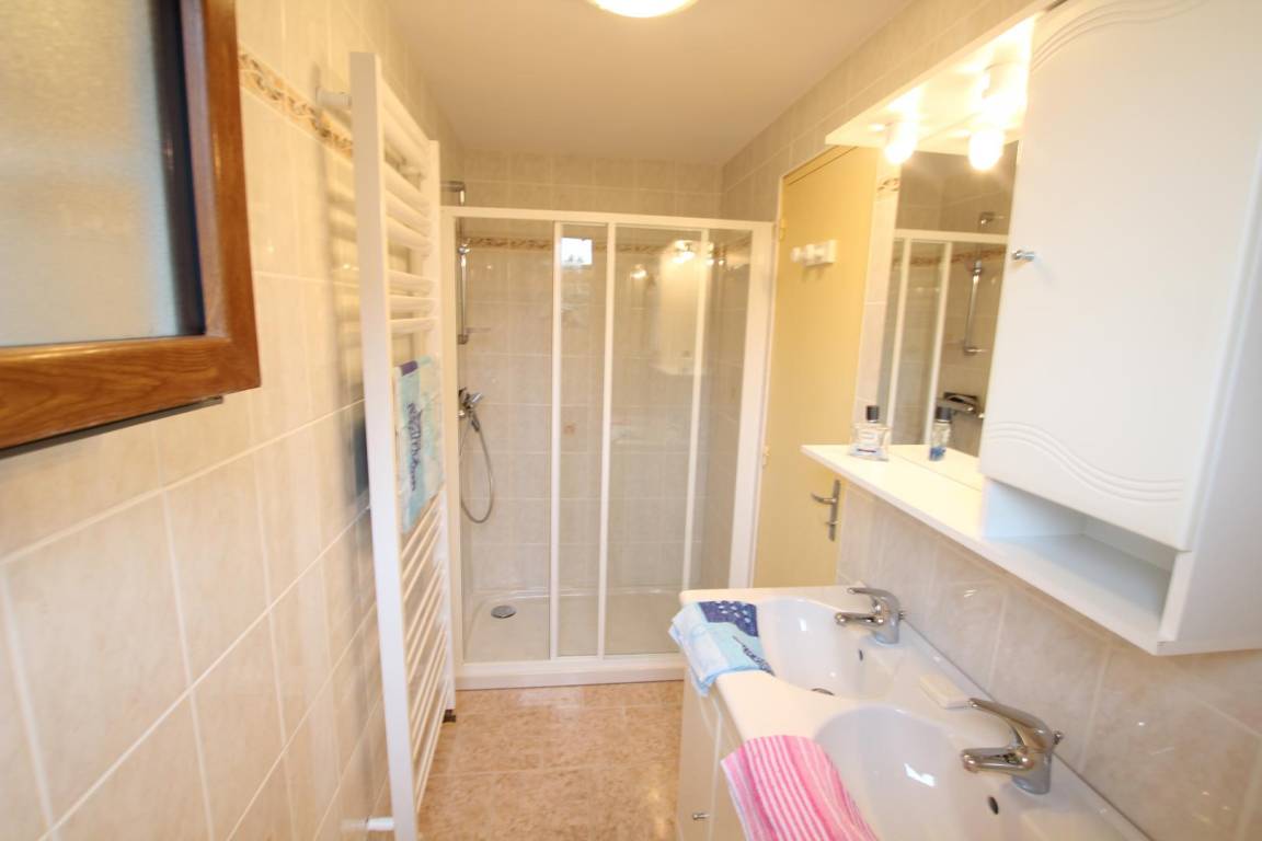 Obergeschoss: Schlafzimmer 1 (zwei Einzelbetten), Schlafzimmer 2 (zwei Einzelbetten), Schlafzimmer 3 (zwei Einzelbetten), Schlafzimmer 4 (ein Doppelbett). Badezimmer mit Dusche und WC. Meerblick von einem der Schlafzimmer im Obergeschoss. Heizkosten und Endreinigung sind nicht im Preis enthalten (Pauschalpreis). Bettwäsche und Handtücher können gemietet werden. Privater, umzäunter Garten mit Gartenmöbeln, Liegestühlen und Grill. Zusätzlich zur Kaution ist eine Reinigungskaution zu hinterlegen.