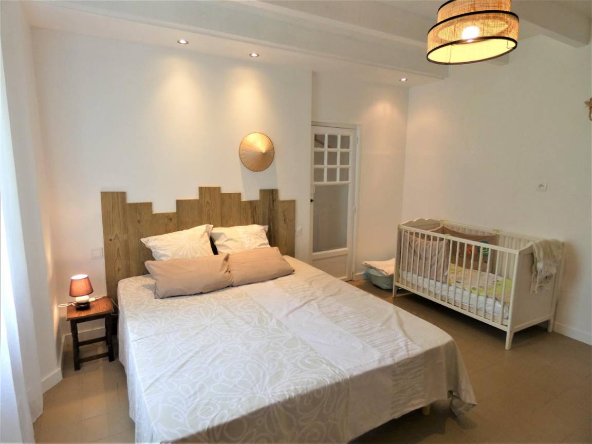 ein Schlafzimmer im Erdgeschoss (1 160x200 Bett und 1 Babybett),