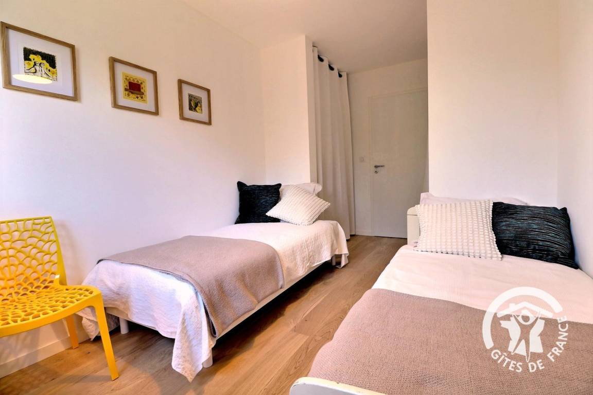 1 Schlafzimmer mit zwei Einzelbetten (90 x 190 cm).
