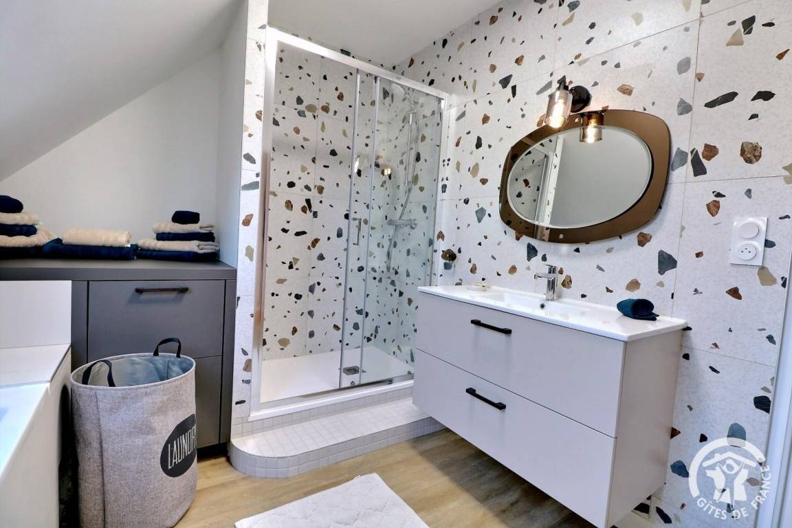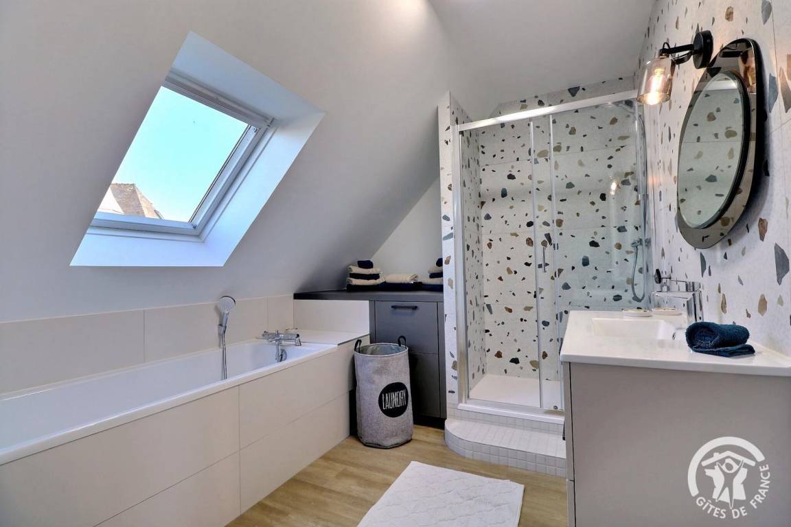„Gîte spacieux, lumineux, bien adapté à l'accueil d'une famille. Dommage que le temps ne nous a pas permis de profiter des extérieurs de la maison. Très bon accueil et disponibilité de la personne qui nous a accueilli. Plage et mer à quelques minutes à pied. Gîte à recommander.“