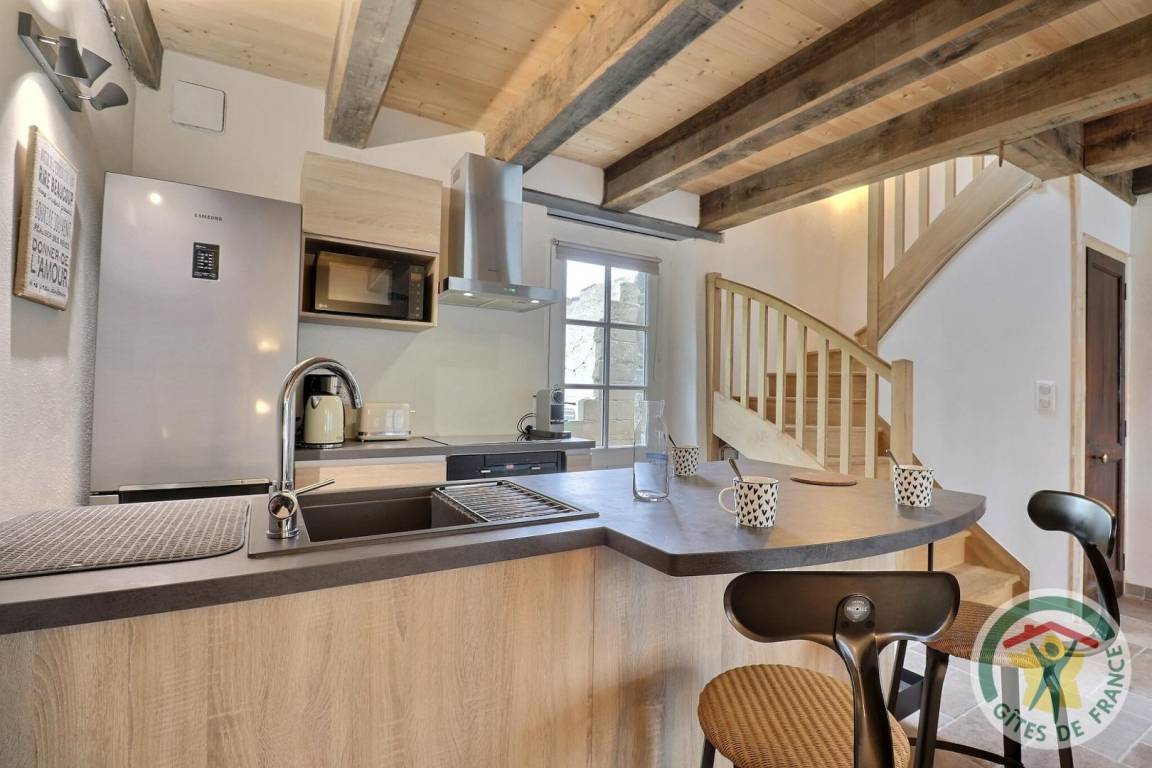 „Location proche de tous les sites réputés du secteur et au calme. Equipement mobilier complet (sauf remarque ci-dessous) et de qualité. Poêle très apprécié en période de froid. Quelques points à améliorer: Un espace de rangement supplémentaire en cuisine serait le bienvenu et une plus grande rigueur au niveau du ménage (poils d'animaux sur les coussins et poussière ancienne sur le haut des meubles) serait également souhaitable.“