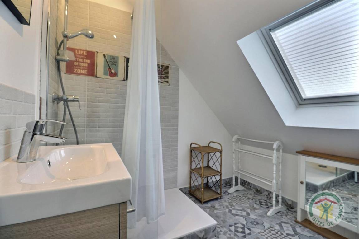„Maison très agréable, très bien équipée, décorée avec beaucoup de goût et qui a plu à chacun. Confort général et nombreuses salles de bain et sanitaires. Grande proximité de la mer dans une rue très calme. Commerces essentiels à quelques mn à pied. Contact très sympathique à la réservation ! Seul point à améliorer: Végétation trop envahissante et gênante à l’entrée sur le chemin d’accès, mobilier de jardin assez poussiéreux. Poubelle cartons et plastiques qui débordait à l’arrivée.“