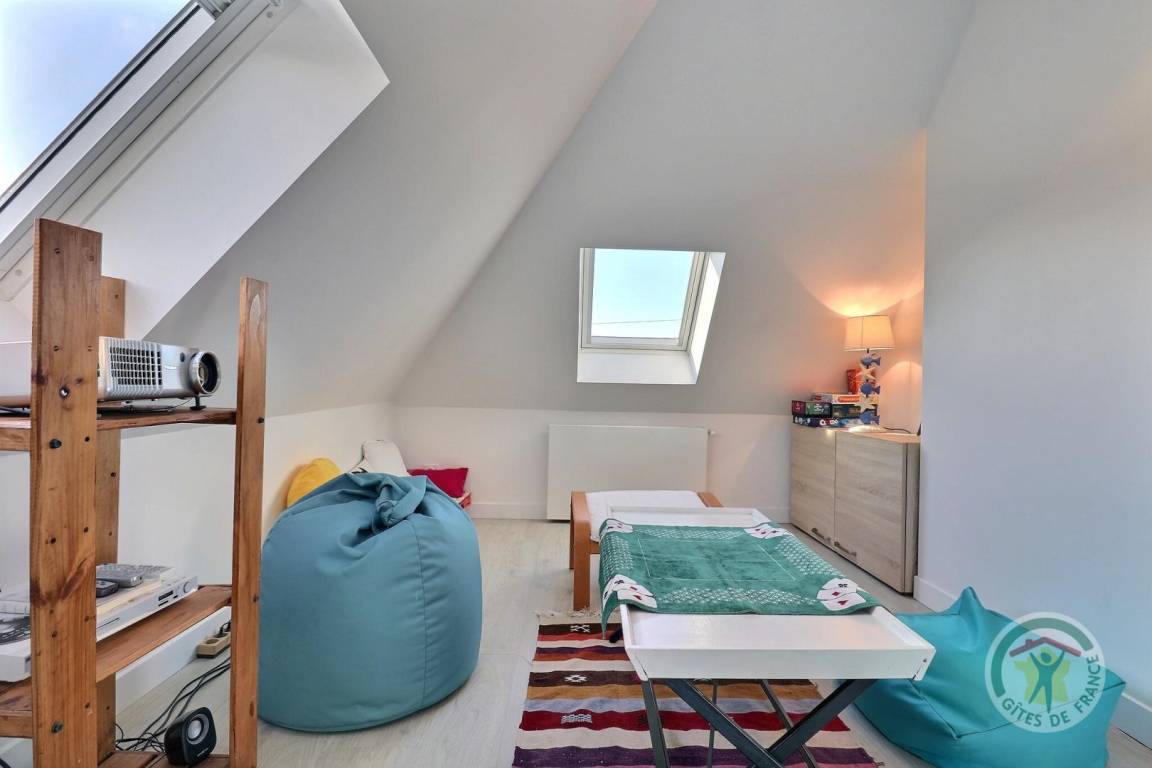„Grande maison bien agréable. Nous étions deux familles avec des enfants plutôt en bas âge (4 enfants entre 18 mois et 6 ans). Tout à été fait pour que nous soyons accueilli avec tout le nécessaire pour le bébé (lit et chaise haute). Les lits et literies sont très confortables. Nous y avons très bien dormi. Nous avons, en prévention mis en hauteur quelques éléments, fragiles mais au final pas tant et tout s'est très bien passé. Une maison très pratique pour les rythmes de vie différents entre les âges. La maison est idéalement située pour la plage (3 minutes à pieds) et se balader depuis la maison. Un peu loin de l'intra muros pour des petits mais je pense qu'en vélo ou à pied avec des plus grands c'est génial. Nous avons eu droit au feu d'artifice du 14 juillet depuis la plage à 3 minutes de la maison ce qui était très appréciable. Il n'y a pas de place de stationnement pour la maison mais il est très facile de se garer dans la rue. Petite piste d'amélioration mais c'est minime, quelques jeux supplémentaires pour tous les âges pour les jours de pluie.“