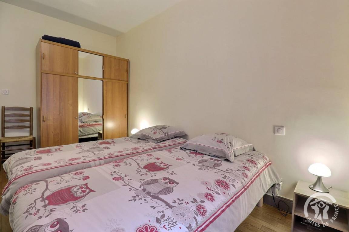 Im 2. Stock eines kleinen Gebäudes: ein Eingang, eine Küche, ein Esszimmer mit einem Wohnzimmer mit einem Schlafsofa für zwei Betten (dekorativer Kamin), ein Schlafzimmer mit einem Bett von 160 x 200, ein Schlafzimmer mit zwei Betten 90 x 190, ein Badezimmer mit ebenerdiger Dusche und Bidet, ein separates WC.