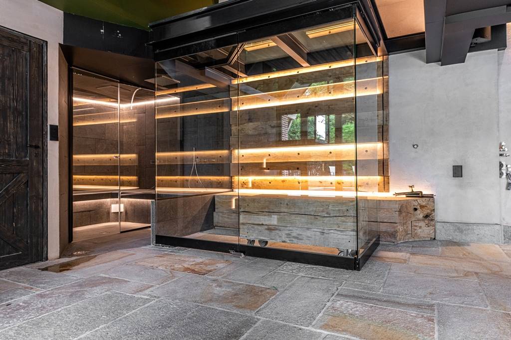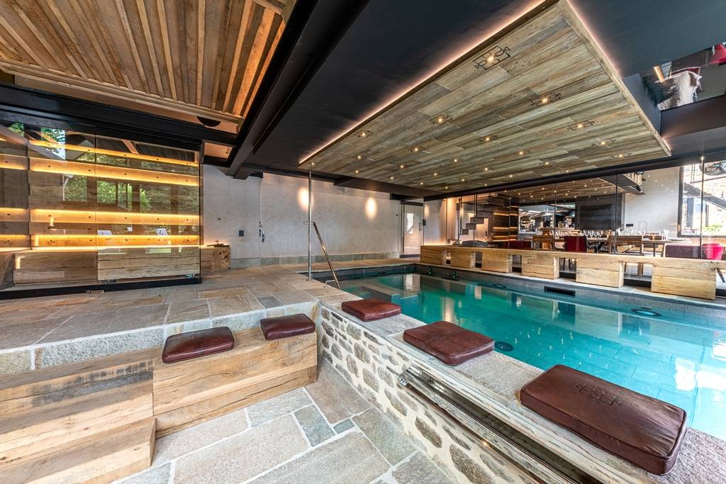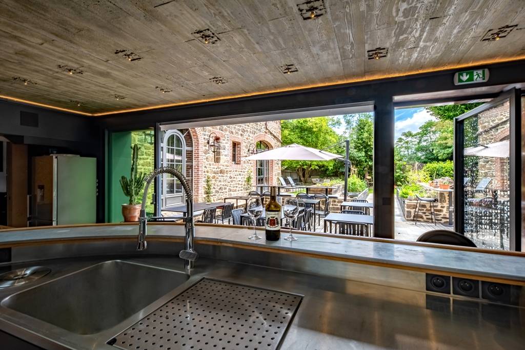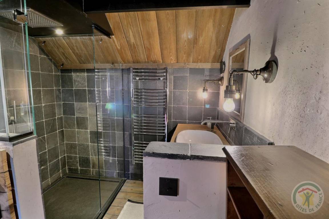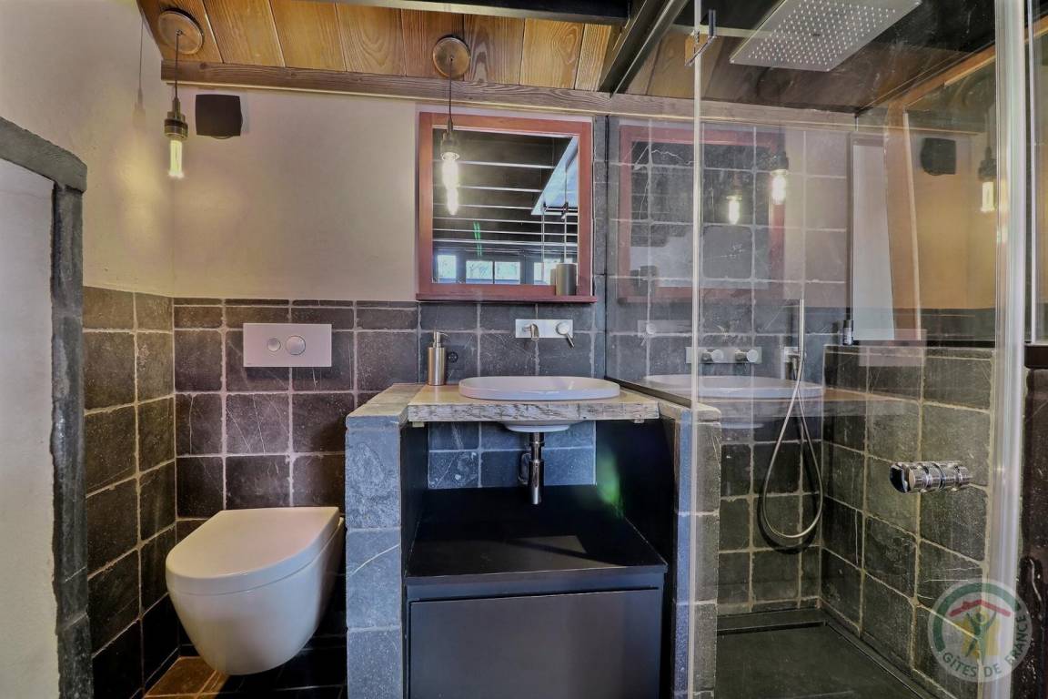 Im Erdgeschoss: Ein Aufenthaltsraum mit Videoprojektor, eine professionelle Küche mit historischer Theke, die sich zu einem privaten Weinkeller mit Panoramablick auf eine nach Süden ausgerichtete Holzterrasse öffnet. In der Küche befindet sich ein großer, fahrbarer Tisch, der auf die Terrasse geschoben werden kann, um die Natur zu genießen. Separates WC. Im Obergeschoss: „Le Champ d'Avoine" (3 schöne Schlafzimmer, jeweils mit einem 180x200 cm großen Bett, Ankleidezimmer, Duschbad und WC), „Le Grenier sur l'eau" (2 kleine Hüttenschlafzimmer, jeweils mit einem 160x200 cm und einem 180x200 cm großen Bett, Duschbad und WC) und „La Grande aux Hirondelles" (2 Schlafzimmer, jeweils mit einem 180x200 cm großen Bett, das in zwei 90x200 cm große Betten umgewandelt werden kann, Duschbad, 1 Schlafzimmer mit einem 160x200 cm großen Bett, separates WC). Es gibt einen Innen-/Außenpool aus Stein, der im Winter und Sommer beheizt ist, sowie ein Hamam und eine Sauna.