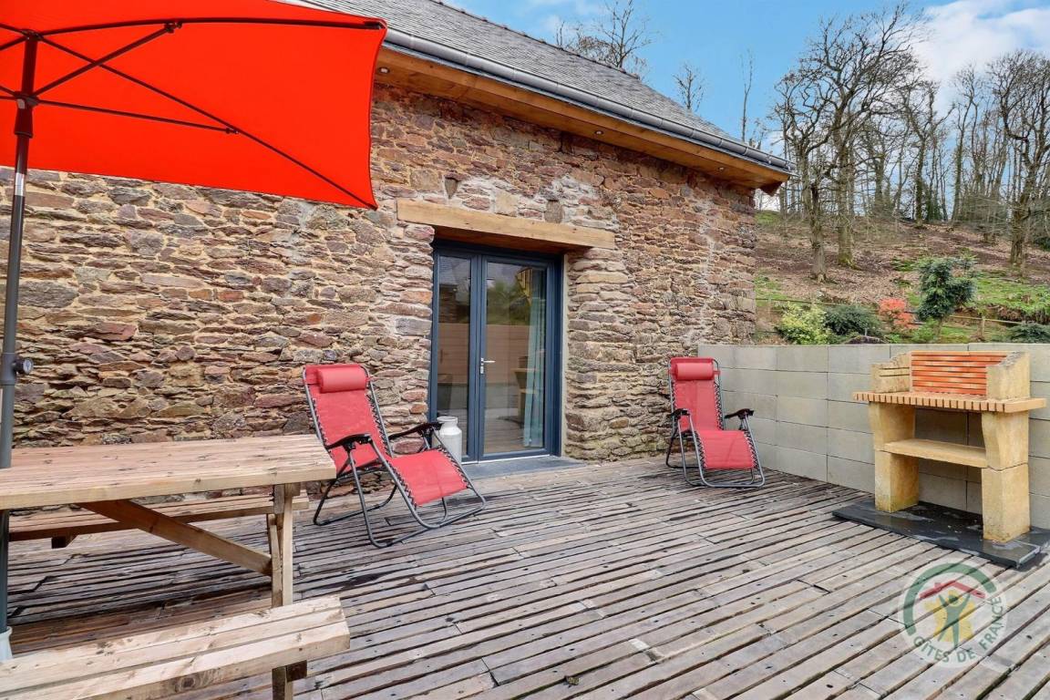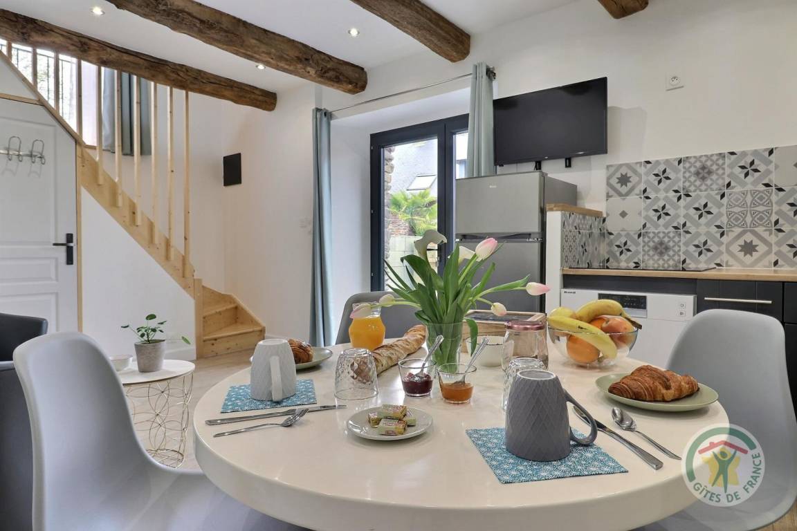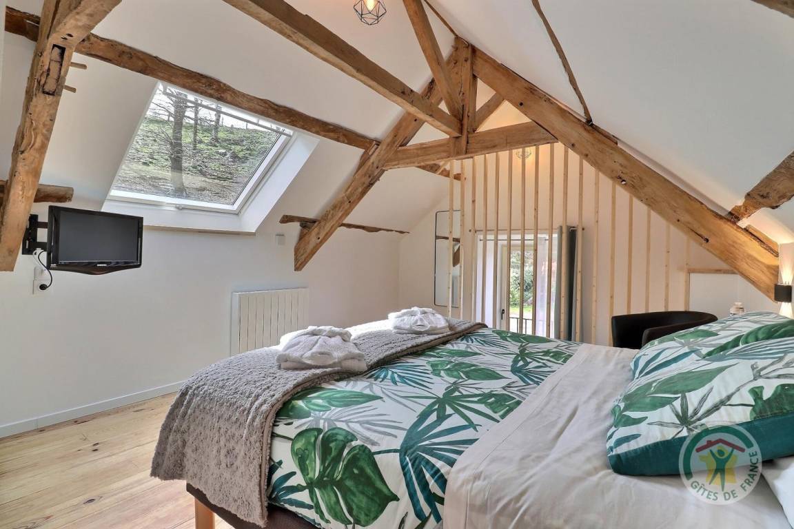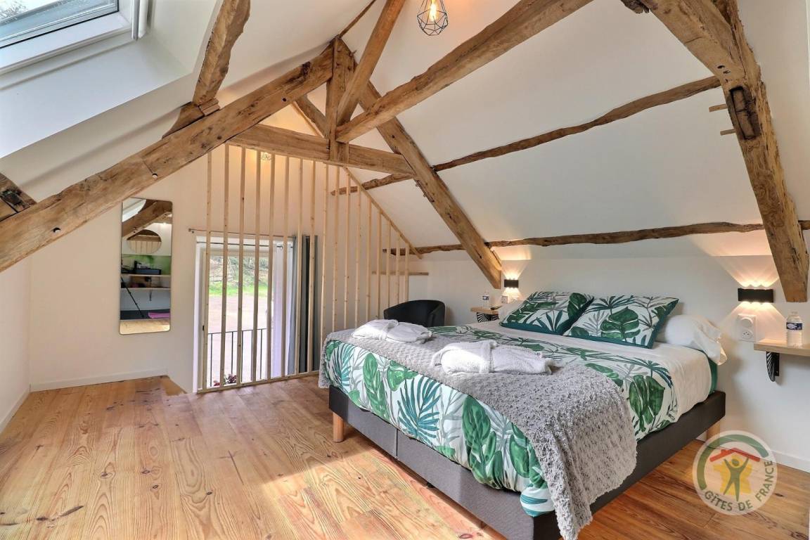 „C'était très bien, la maison était agréable, propre, bien agencée, globalement adaptée à des enfants en bas âge à condition de faire attention à l'escalier, proche de plusieurs ballades et sites à voir en Brocéliande. Le spa était particulièrement appréciable avec la chaleur, notre fille a beaucoup aimé les grenouilles de la mare et faire de la balançoire. La cuisine est très bien fournie, avec ces petits détails qu'on ne retrouve pas partout: Couteaux de cuisine qui coupent, planche à découper, four et micro-ondes etc. Les lits sont vraiment confortables, on a bien dormi toute la semaine et personne n'a eu mal au dos. La propriétaire nous a indiqué des choses à faire, conseillé des restaurants et il y avait des guides et des plans dans la maison. Les quelques petits bémols: Il y a eu une invasion de mouches. Apparemment, c'était exceptionnel de cette année. Ça aurait aussi été appréciable d'avoir un placard vide ou deux dans la cuisine pour ranger les courses.“