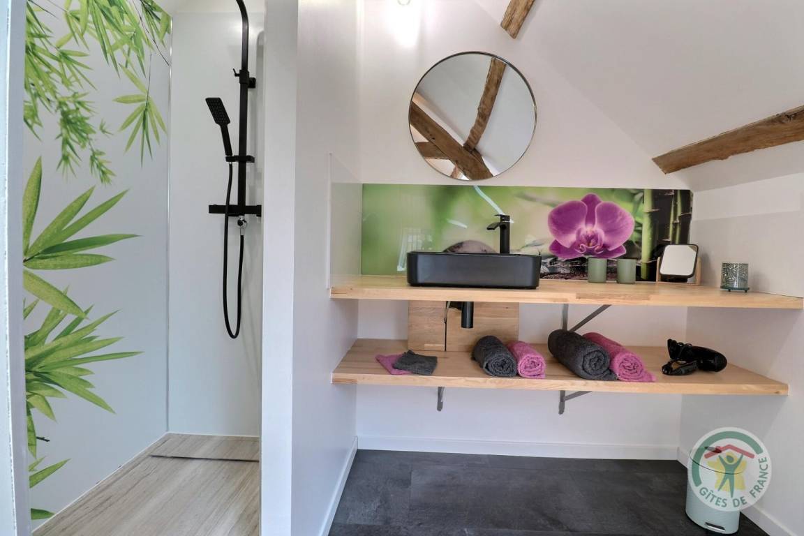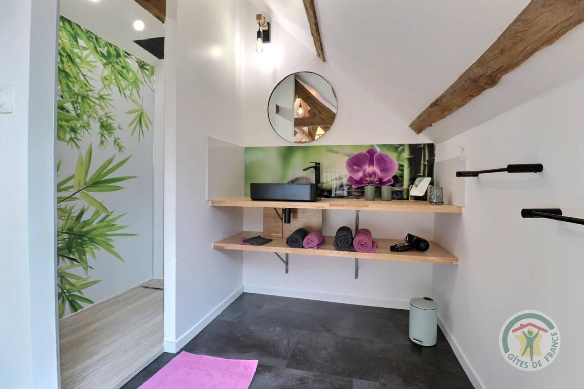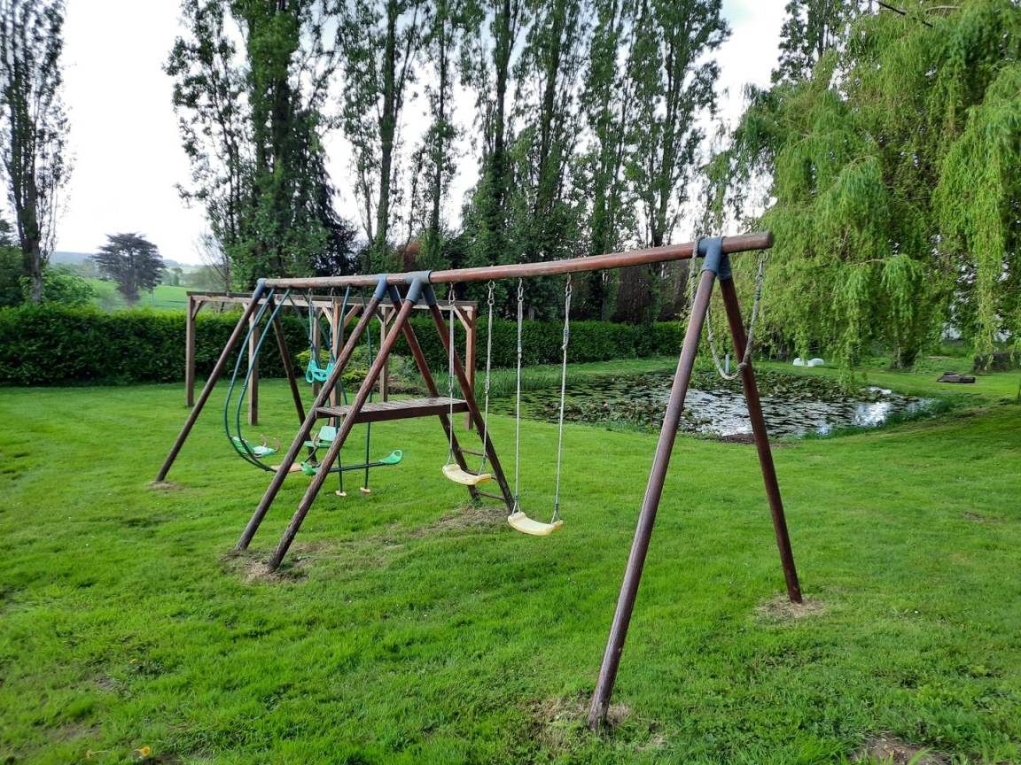 „C'était très bien, la maison était agréable, propre, bien agencée, globalement adaptée à des enfants en bas âge à condition de faire attention à l'escalier, proche de plusieurs ballades et sites à voir en Brocéliande. Le spa était particulièrement appréciable avec la chaleur, notre fille a beaucoup aimé les grenouilles de la mare et faire de la balançoire. La cuisine est très bien fournie, avec ces petits détails qu'on ne retrouve pas partout: Couteaux de cuisine qui coupent, planche à découper, four et micro-ondes etc. Les lits sont vraiment confortables, on a bien dormi toute la semaine et personne n'a eu mal au dos. La propriétaire nous a indiqué des choses à faire, conseillé des restaurants et il y avait des guides et des plans dans la maison. Les quelques petits bémols: Il y a eu une invasion de mouches. Apparemment, c'était exceptionnel de cette année. Ça aurait aussi été appréciable d'avoir un placard vide ou deux dans la cuisine pour ranger les courses.“