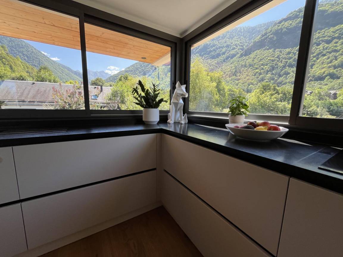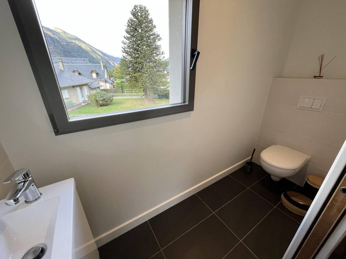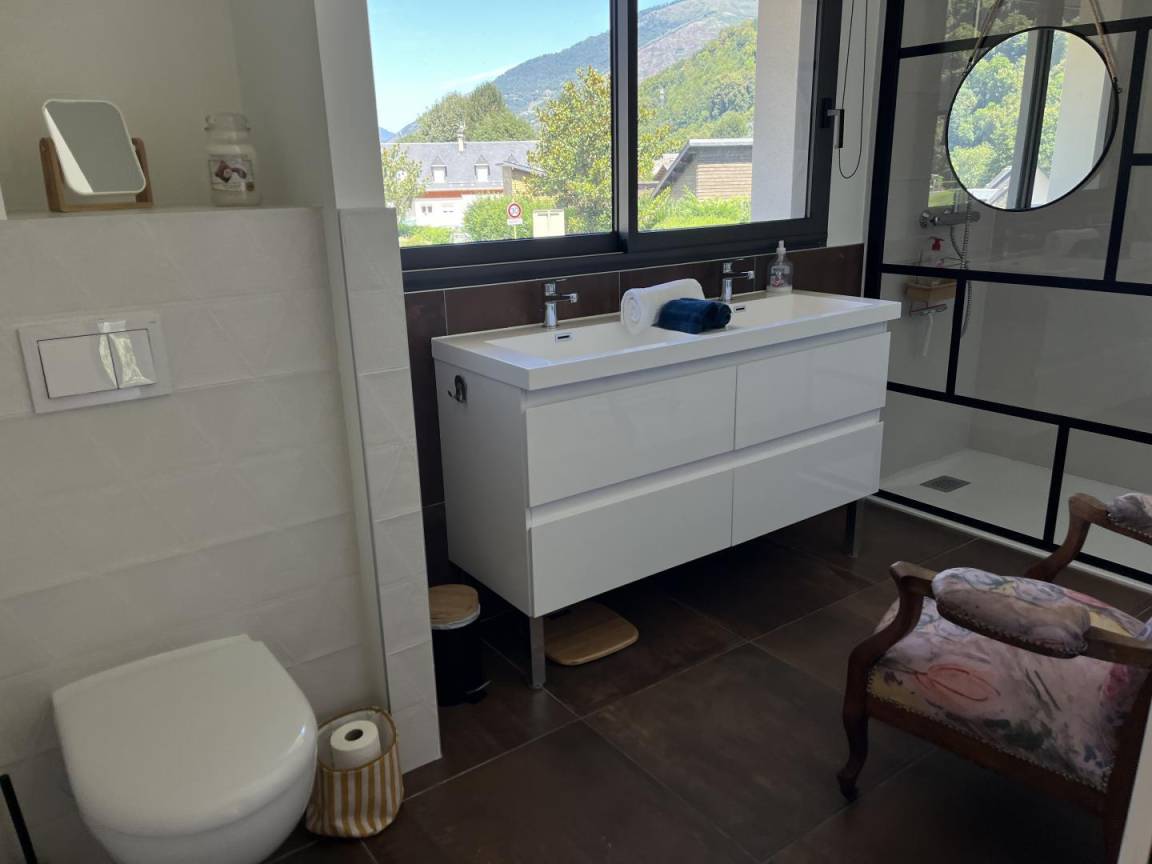 „Beau chalet, spacieux, bien équipé et agréable à vivre, proche des commerces (à un 1,5km du centre ville de Bagnère de Luchon environ, facilement réalisable à pied), bien situé pour les amateurs de vélo et de randonnées. Propriétaire très sympathique et arrangeante. Conciergerie agréable et disponible. Seul petit bemol, le vis à vis sur la route et les voisins (salles de bain et chambres notamment), mais avec une vue sur la montagne très jolie de la cuisine. Nous avons passé de très belles vacances dépaysantes“