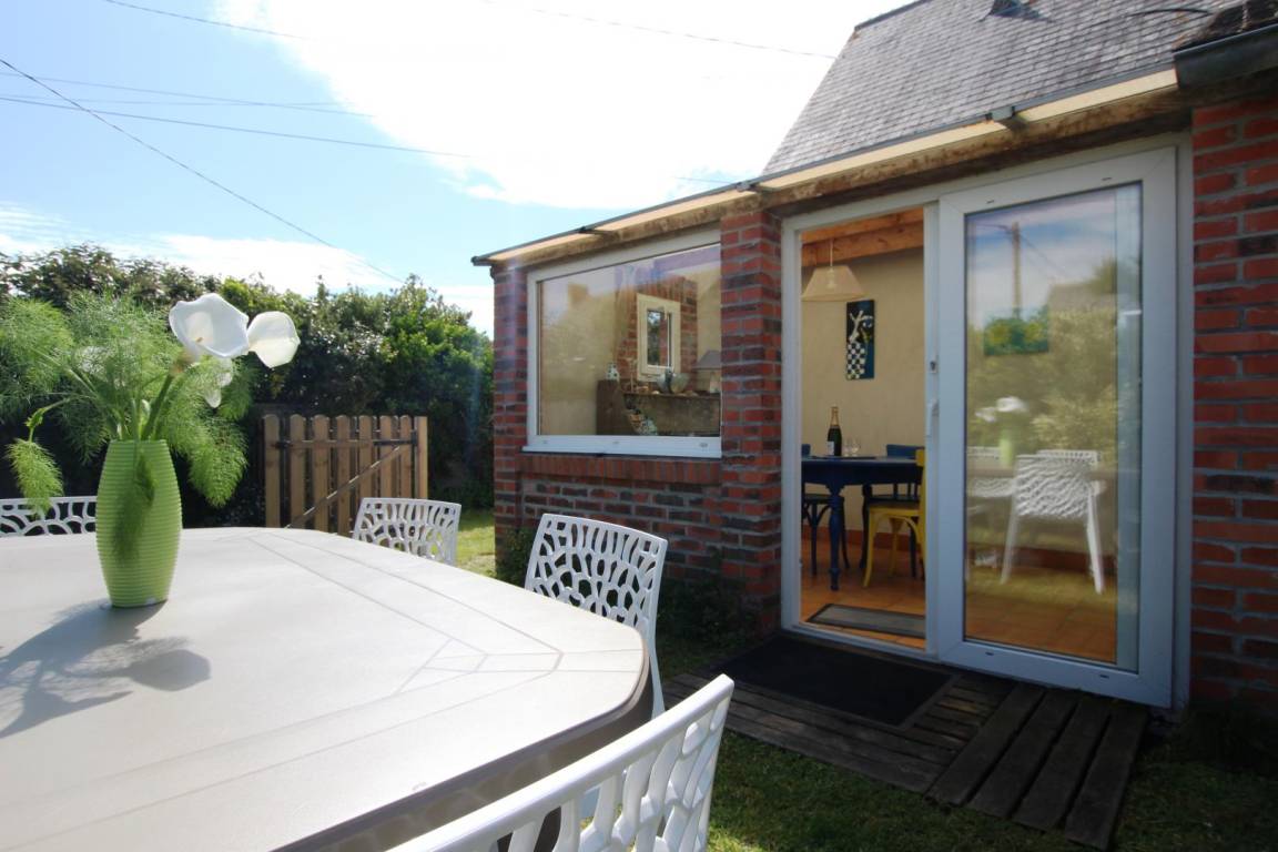 „Gite très agréable Terrasse avec vue en partie sur la mer formidable Petite véranda bienvenue avec beaucoup de lumière“