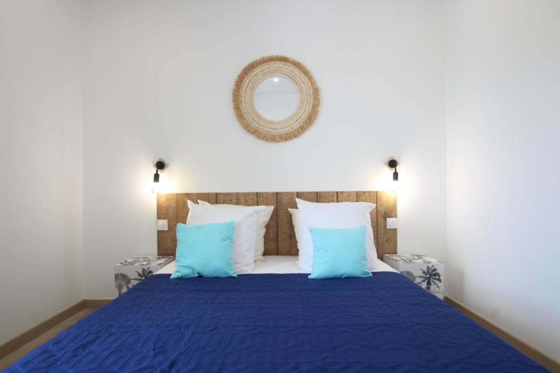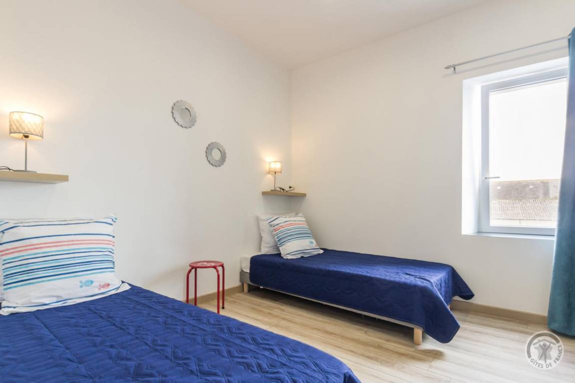 Doppelhaushälfte neben einem anderen Mietobjekt. Wohnzimmer (TV, Internet über ADSL-Anschluss) mit Kochnische (Backofen, Geschirrspüler, Induktionskochfeld, Kühlschrank mit Gefrierfach, Mikrowelle). Duschbad mit WC. Obergeschoss (steile Treppe): Galerie mit Schreibtisch, Schlafzimmer 1 (zwei zusammengestellte Betten à 90 x 190 cm), Schlafzimmer 2 (ein Bett à 160 x 200 cm), Schlafzimmer 3 (zwei zusammengestellte Betten à 90 x 190 cm), separates WC. Babyausstattung auf Anfrage. Bettwäsche und Handtücher können gemietet werden. Reinigungsservice gegen Aufpreis. Elektrische Heizung gegen Aufpreis. Privater, umzäunter Innenhof. Gartenmöbel. Sonnenliegen. Grill. Gemeinsamer Waschraum mit Waschmaschine und Trockner. Fahrradabstellraum. Gemeinsamer Parkplatz.