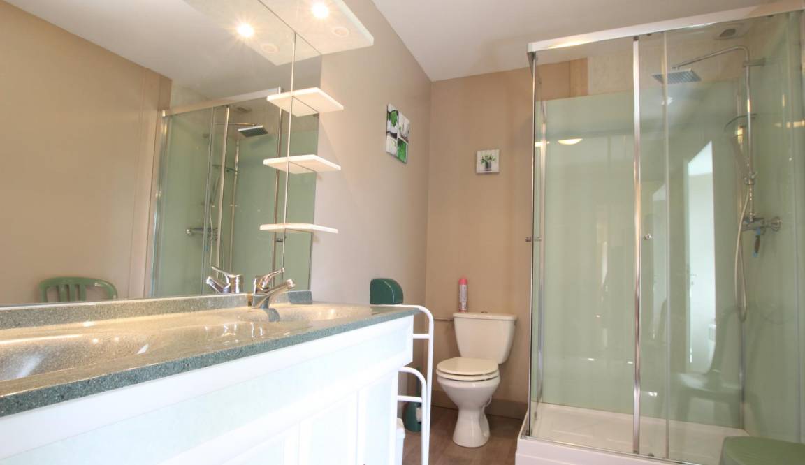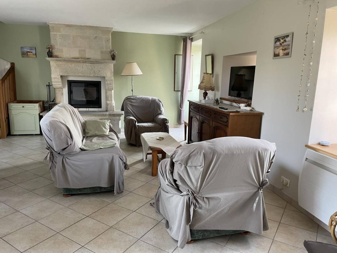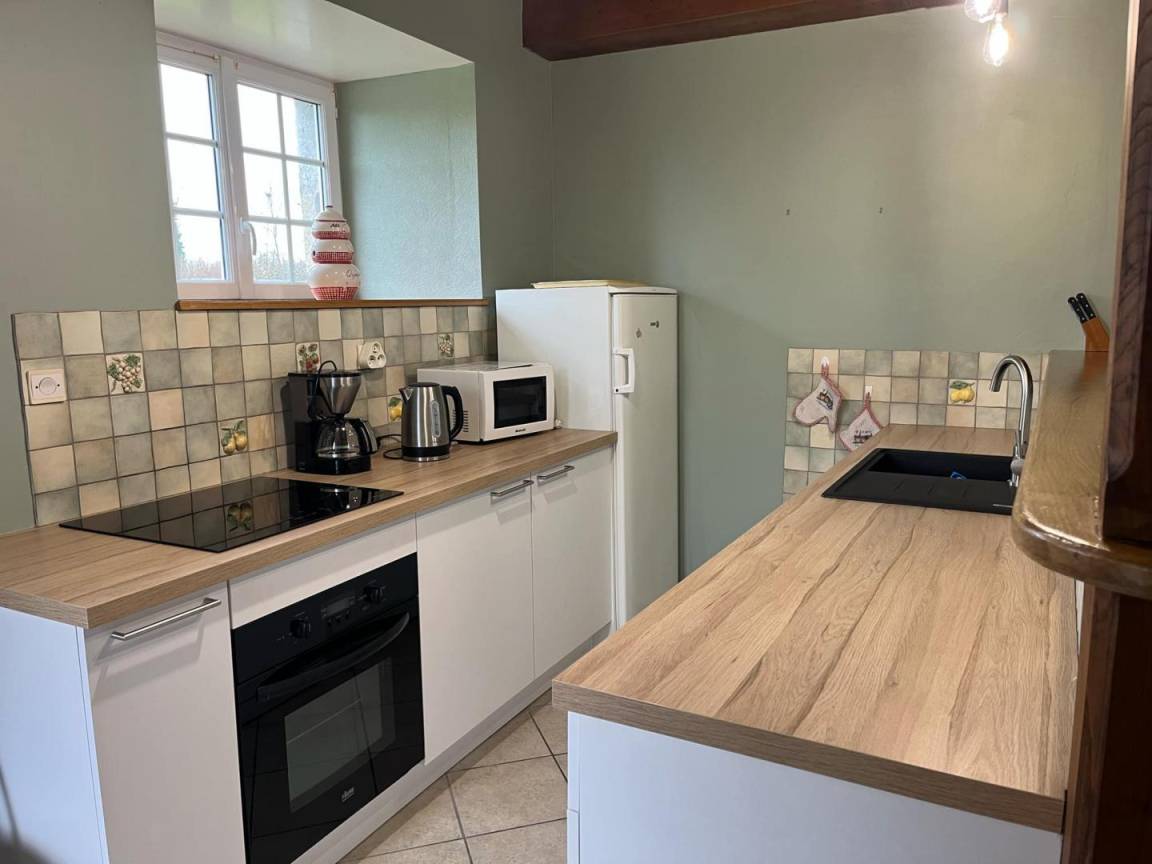 Freistehendes Haus. Wohnzimmer. Küche. 3 Schlafzimmer. 2 Doppelbetten (140 cm). 2 Einzelbetten (90 cm). Duschbad. 2 WCs. Kamineinsatz (Holz nicht inklusive). Fernseher. WLAN. Waschmaschine. Trockner. Geschirrspüler. Babyausstattung. Bettwäsche und Handtücher können gemietet werden. Reinigungsservice gegen Aufpreis. Elektrische Heizung gegen Aufpreis. Privater, umzäunter Garten. 2 Terrassen. Gartenmöbel. Grill. Unterstand.