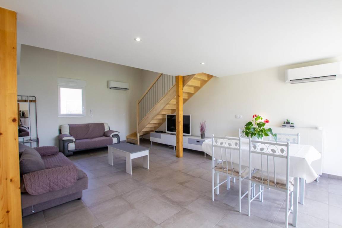 „Très bon séjour au calme avec un grand jardin pour les enfants et une belle terrasse pour les repas. La climatisation n’était pas de trop pour les grosses chaleurs. L’intérieur est très bien équipé. Et la propriétaire a toujours été aux petits soins avec nous, nous a conseillés sur nos visites et restaurants, que du positif, merci à elle !“