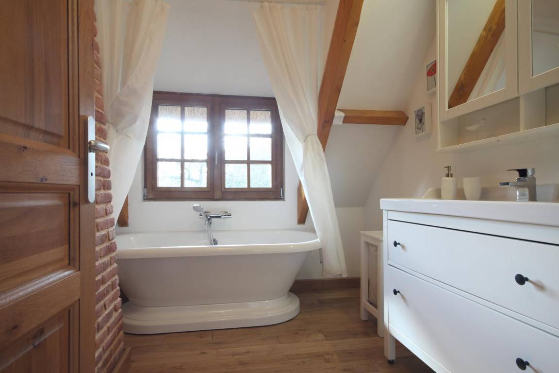 „Il faut aimer l'ancien mais dans ce cas on est servi ! Presque l'impression d'être un châtelain avec l'avantage du confort moderne. Meubles anciens d'aspect patrimoniaux mais pas complètement adaptés à l'usage prévu (c'est un gite de vacances et on a peur de tâcher les imposantes chaises de la cuisine). Imposante cheminée en pierre. La suggestion de faire un barbecue dedans nous a honnêtement fait peur (risque d'odeurs sur des meubles anciens, incertitude sur le ramonage du conduit...). J'aurais honnêtement préféré un barbecue extérieur, même de bas de gammeC'est parfait pour 4 à 5 adultes. Au delà, la cuisine-salle à manger me semble un peu petite. De même pour le salonTrès calme et bien ensoleillé (là, on a eu sans doute de la chance...). Le village a un charme certain, avec ses nombreuses chaumières, son église et le foisonnement de couleurs des jardins. Dire qu'il y a des commerces à proximité est un peu exagéré: Une épicerie multifonction à un peu plus de dix minutes de marche et c'est tout. Très agréable séjour dans un superbe lieu“