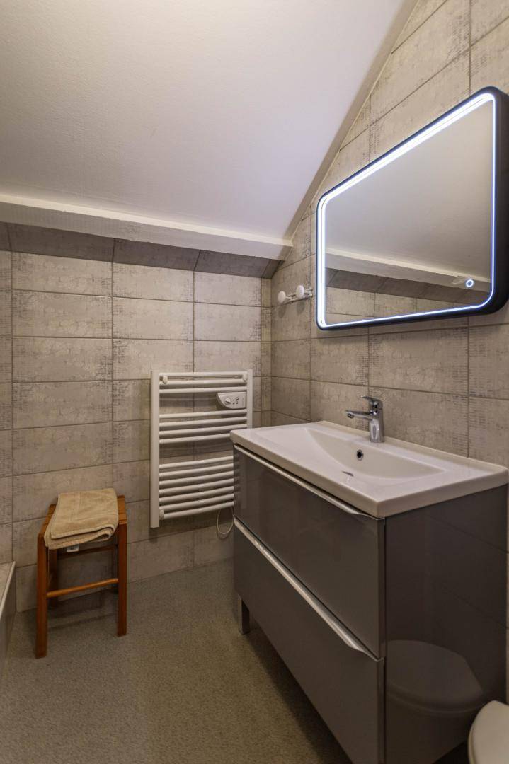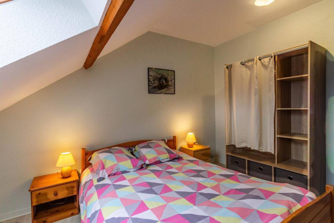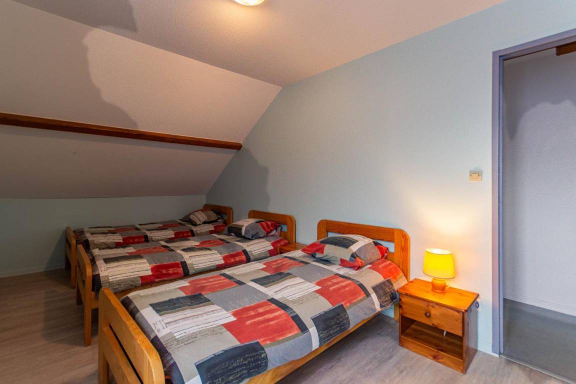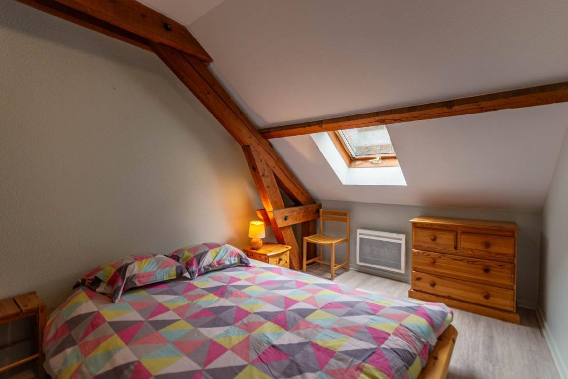 4 Gîtes im Haus. 2. Etage: Wohnzimmer mit Küchenbereich (1 Einzelbett), 3 Schlafzimmer (1 Doppelbett 140x190 cm, 3 Einzelbetten 90x190 cm), Badezimmer (nur Dusche), separates WC. Gemeinsame Terrasse im 1. Stock und im Erdgeschoss. Gesamtnutzfläche: 70 m² inkl. Dachgeschossflächen. Waschmaschine und Trockner im Gemeinschaftsraum im Erdgeschoss.