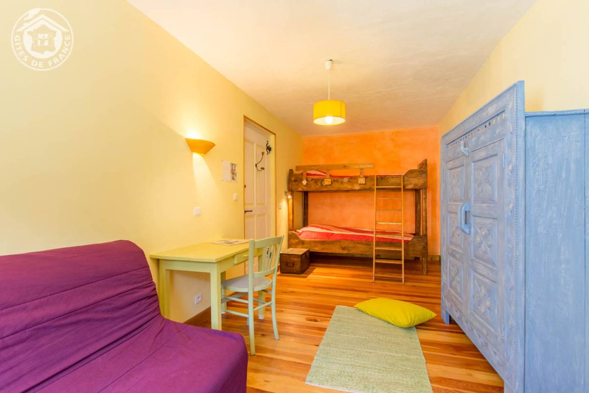Gîte neben dem Haus des Eigentümers. Direkter Zugang zum Ferienhaus vom Parkplatz und der Terrasse. Erdgeschoss + 1. Stock: Wohnzimmer mit Küchenbereich, Sat-TV, 3 Schlafzimmer (1 Doppelbett 140 x 190 cm / 1 Doppelbett 140 x 190 cm / 1 Doppelschlafcouch, 2 Einzel-Etagenbetten 90 x 190 cm.), 2 Duschbäder. Private Terrasse, Grundstück. Bettwäsche wird gestellt.