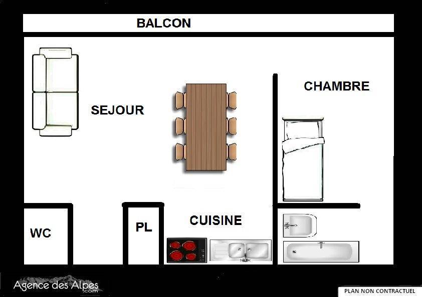 Die Résidence Oisans mit Aufzug befindet sich im Herzen der Croisette, im Zentrum des Resorts, und in der Nähe des Sportzentrums und vieler in der „Multi-Activities Card" inbegriffener Aktivitäten. Fläche von ungefähr 35 m². 5te Etage. Orientierung : Ost, Süd-Ost, Süd. Wohnzimmer mit Klappschlafcouch (rapido 160). Schlafzimmer mit 2 Stockbetten, Ausziehbett. Küche mit Wasserkocher, Kaffeemaschine, Toaster, Dunstabzugshaube, Geschirrspülmaschine, kleiner Backofen, 2 Glaskeramikkochfelder, Kühlschrank. Badezimmer mit Badewanne, Waschbecken. separates WC. Die oberen Betten sind nicht für Kinder unter 6 Jahren geeignet.