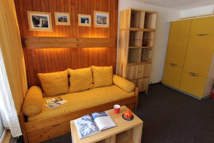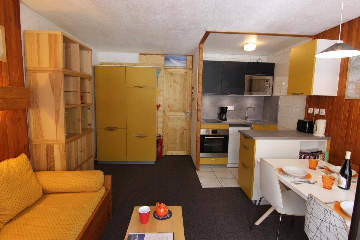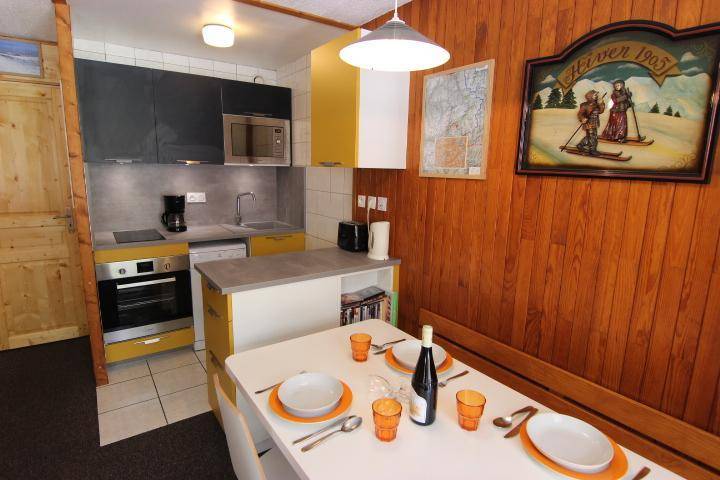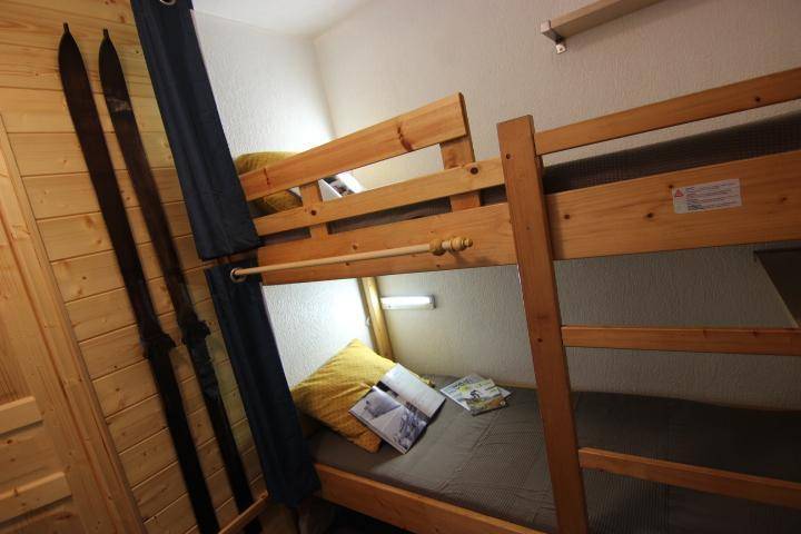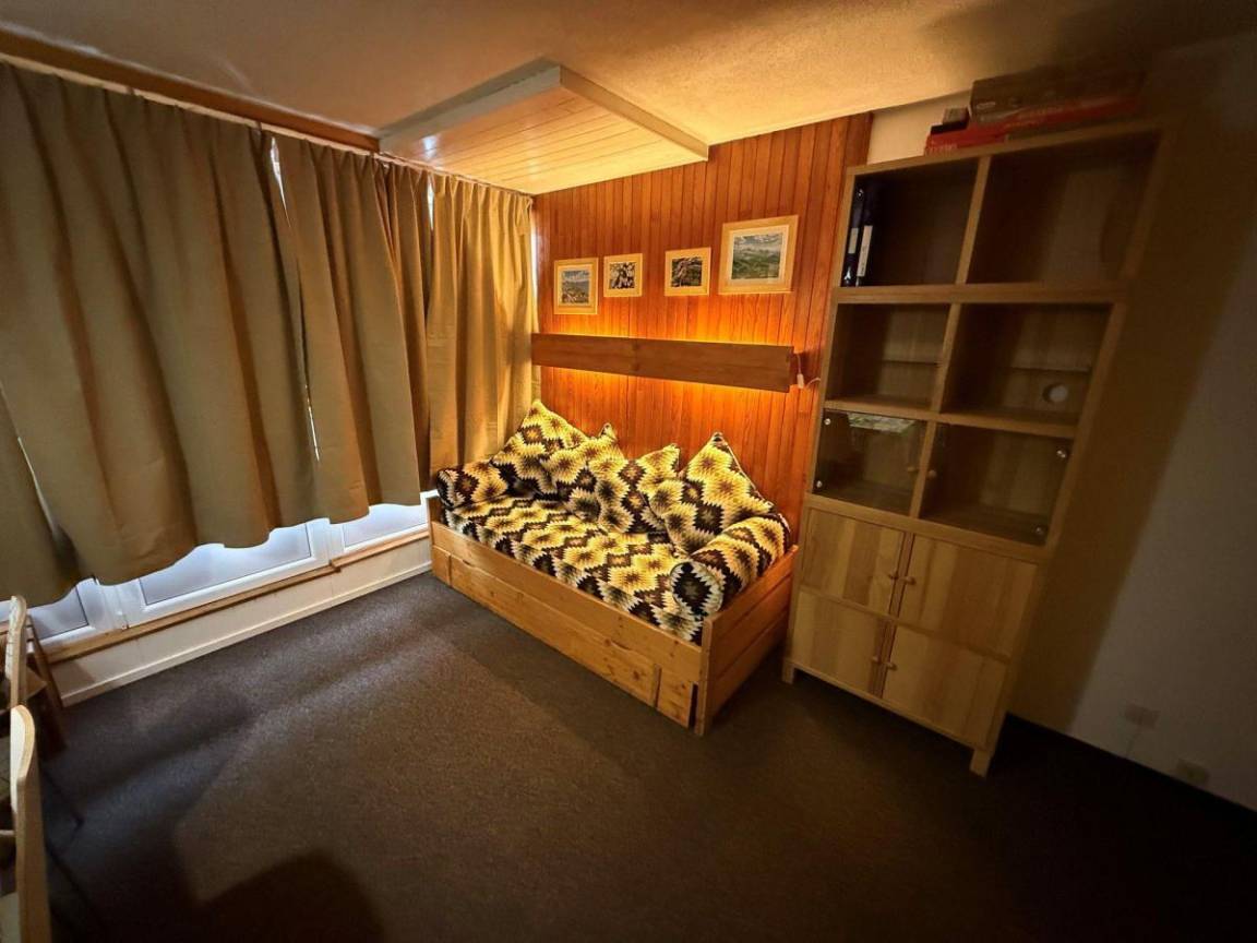 Die Residence Les Névés befindet sich im oberen Teil von Val Thorens, bekannt als Quartier Péclet. Das Viertel ist bei jungen Urlaubern sehr beliebt, da es hier mehrere Bars für tolles Après-Ski gibt. In der Nähe gibt es Geschäfte und Residenzen und die Skipisten sind nur 50 m von der Residenz entfernt. Resort-Kartenreferenz Nr. 58/E2. Fläche von ungefähr 25 m². 5te Etage. Orientierung : Nord, Ost. Diele mit 2 Stockbetten. Wohnzimmer mit Ausziehschlafcouch für 2 Personen, TV. Kochnische mit Geschirrspülmaschine, Mikrowellenherd, 2 Induktionsherdplatten, Kühlschrank. Badezimmer mit Badewanne, Waschbecken, WC. Balkon. Die oberen Betten sind nicht für Kinder unter 6 Jahren geeignet.