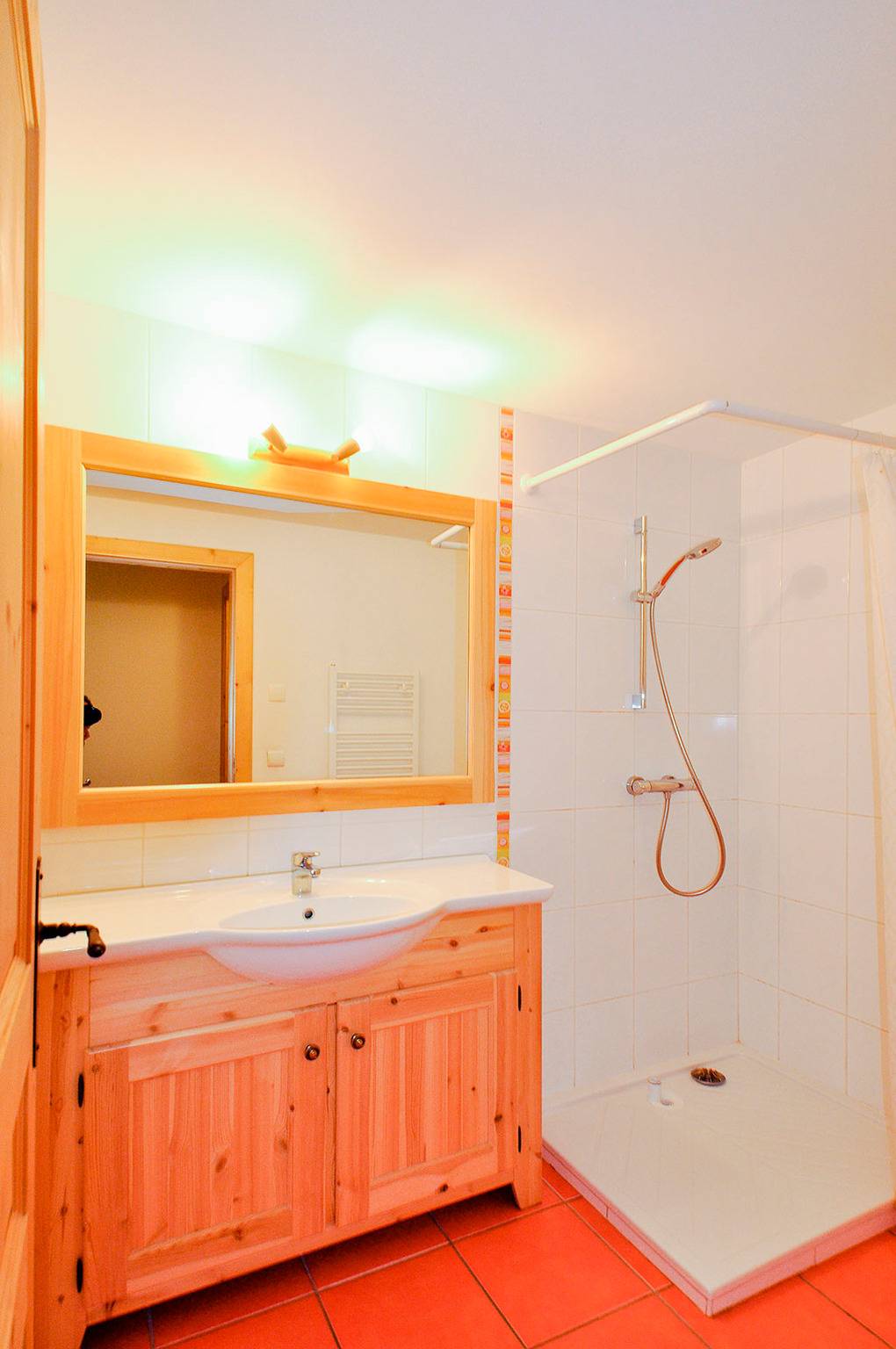Parterre: Windfang mit Schuhregalen, Skistellmöglichkeit. Doppelzimmer. Doppelzimmer mit franz. Bett. Bad: Du, Wb. Separates WC.