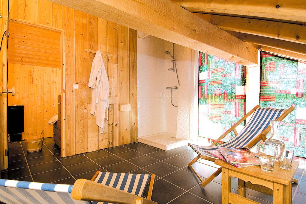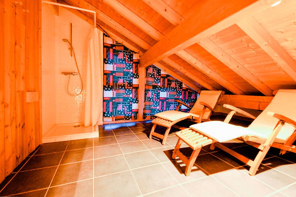 Haus: Regionaltypisches Reihen-Chalet, aufwendig renoviert zu einem komfortablen Ferienhaus mit Sauna. 6-Zimmerhaus, ca. 150 qm Wohnfläche über 4 Etagen. Sehr geschmackvolle, moderne Einrichtung. E-Fußbodenheizung, Solarheizung. Warmwasser über 450 l E-Boiler. Überdachter Balkon mit Sitzecke, schönem Blick. Internet über W-Lan. Parkplätze 50 m.