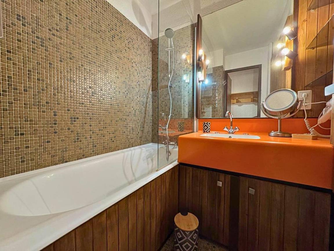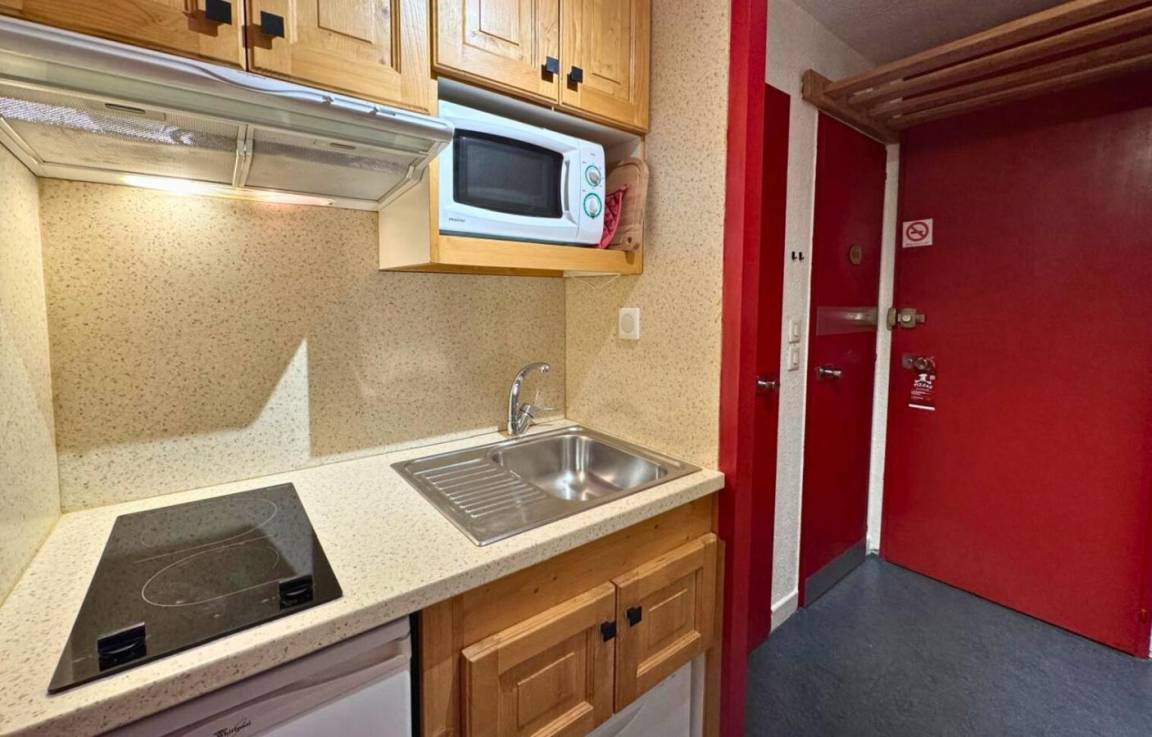 Die Residence Chavière mit Aufzug befindet sich im Herzen der Croisette, im Zentrum des Resorts, und in der Nähe des Sportzentrums und vieler Aktivitäten, die in der „Multi-Activities Card" enthalten sind. Fläche von ungefähr 22 m². 7te Etage. Orientierung : Süd. Wohnzimmer mit 2 Sofabetten, 2 Ausziehbetten. Kochnische mit Wasserkocher, Kaffeemaschine, Toaster, Geschirrspülmaschine, Mikrowellenherd, Glaskeramikkochfelder, Kühlschrank. separates WC. Badezimmer mit Badewanne. Balkon.