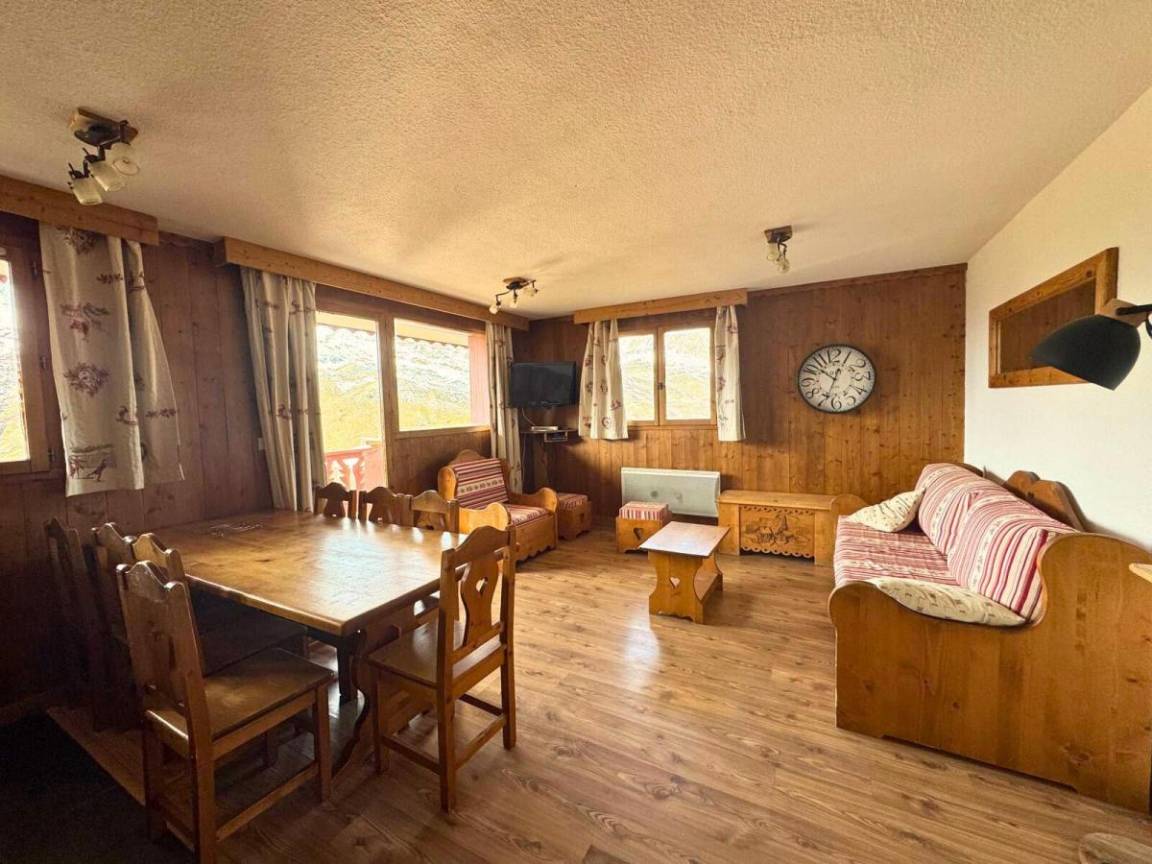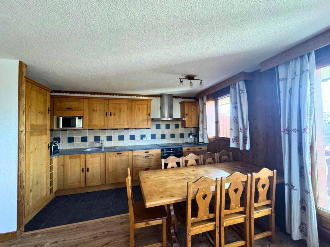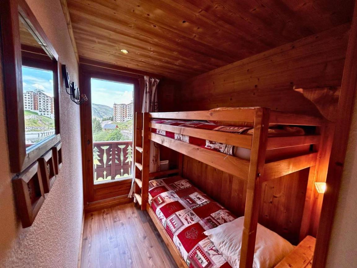 Das Chalet Courmayeur der Residenz Les Côtes d'Or liegt im Bezirk Reberty 1850 auf den Höhen des Ferienortes Les Menuires in den französischen Alpen. Diese Chalets bieten Ruhe und befinden sich in der Nähe von Geschäften und Restaurants. Sie sind außerdem ideal am Fuße der Pisten gelegen. In der Residenz Les Cotes d'Or (2 bis 5 Zimmer) wurden einige der Apartments komplett renoviert und bieten luxuriöse Unterkünfte. Fläche von ungefähr 58 m². 2te Etage. Orientierung : Süd, West. Wohnzimmer mit einfache Klappschlafcouch (80), Ausziehschlafcouch für 2 Personen (80). Schlafzimmer mit Doppelbett (140). Schlafzimmer mit 2 Einzelbetten (90). Schlafzimmer mit 2 Stockbetten (80). Kochnische mit Raclettegerät, Wasserkocher, Kaffeemaschine, Backofen, Toaster, Dunstabzugshaube, Geschirrspülmaschine, Mikrowellenherd, 4 Glaskeramikkochfelder, Kühl-Gefrier-Kombination. Badezimmer mit Badewanne, Waschbecken, Handtuchtrockner, WC. Waschräume mit Dusche, Waschbecken. separates WC. Balkon. Die oberen Betten sind nicht für Kinder unter 6 Jahren geeignet.
