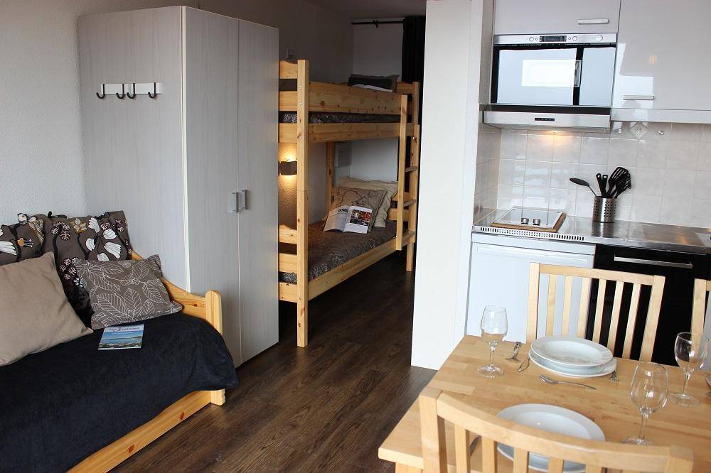 Die Residenz Altineige befindet sich am Eingang der Station Val Thorens im Viertel Arolles. Sie wurde von einer jungen und sportlichen Kundschaft geschätzt. Gegenüber dem Busbahnhof, dem Einkaufzentrum und dem Sportzentrum Caron und in der Nähe des Lebens der Station (Restaurants, Bars...). Im Erdgeschoss der Residenz werden Sie das Sportgeschäft Skiset und ein Lebensmittelgeschäft/Backerei finden. Ganz in der Nähe der Piste. Plan der Station Nr. 3/C2. Fläche von ungefähr 20 m². 5te Etage. Orientierung : West. Wohnzimmer mit Ausziehschlafcouch für 2 Personen, Stockbett. Kochnische mit kleiner Backofen mit Mikrowellenfunktion, Geschirrspülmaschine, Induktionsherdplatten, Kühlschrank. Badezimmer mit Badewanne. separates WC. Balkon. Die oberen Betten sind nicht für Kinder unter 6 Jahren geeignet.